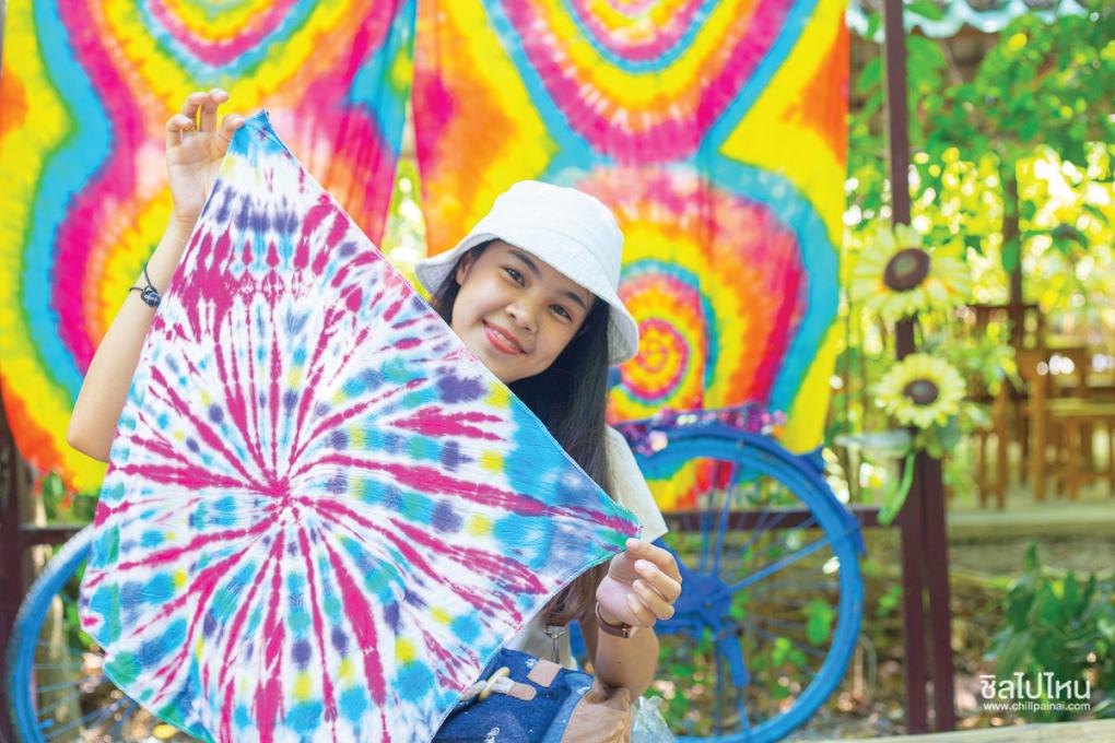 แต่วันนี้เราจะมาทำผ้ามัดย้อมกันค่า จะมีให้ทำทั้งผ้ามัดย้อมร้อนและผ้ามัดย้อมเย็น วันนี้เรามีเวลาไม่มากจึงเลือกทำแบบเย็น ผ้าจะมีให้เลือกหลายขนาด ทั้งผืนเล็ก ผืนใหญ่ ผ้าพันคอ เสื้อ เดรส เป็นต้น เราเลือกเป็นผ้าเช็ดหน้า ราคา 60 บาท หลังจากได้ผ้ามาแล้วก็มาทำกันเล้ยยย