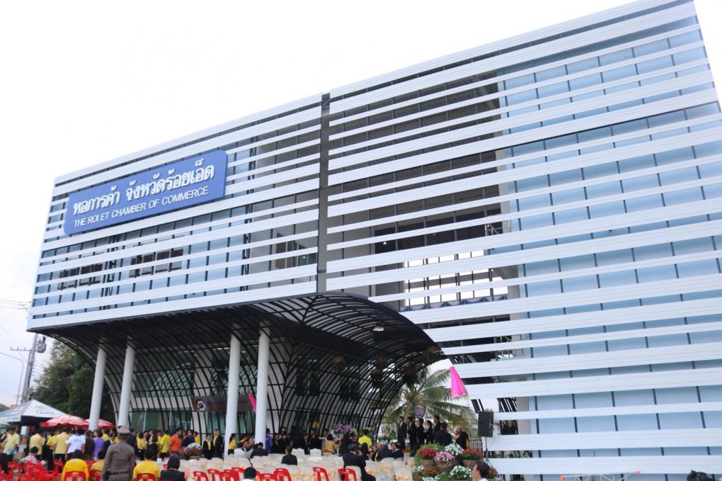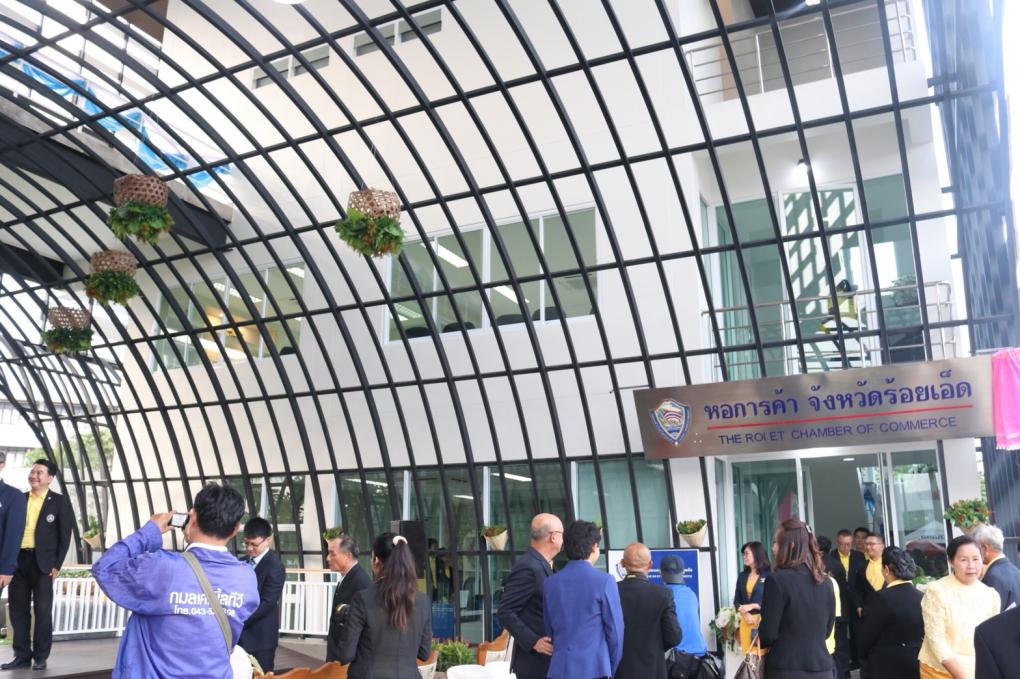 โดยมี นายวันชัย คงเกษม ผู้ว่าราชการจังหวัดร่อยเอ็ด, นายสฤษดิ์ วิฑูรย์ ผู้ว่าราชการจังหวัดอุบลราชธานี พร้อมด้วยนางยุภาพร วิฑูรย์ นายกเหล่ากาชาดจังหวัดอุบลราชธานี และนายศุภศิษย์ วิฑูรย์ รองผู้ว่าราชการจังหวัดอุบลราชธานี, นายกลินท์ สารสิน ประธานกรรมการหอการค้าไทย พร้อมด้วยคณะกรรมการหอการค้าไทย, ประธานหอการค้าทุกจังหวัด และแขกผู้มีเกียรติ ร่วมเป็นเกียรติแสดงความยินดี กับหอการค้าจังหวัดร้อยเอ็ด ในโอกาสพิธีเปิดป้ายอาคาร สำนักงานหอการค้าจังหวัดร้อยเอ็ด (แห่งใหม่)