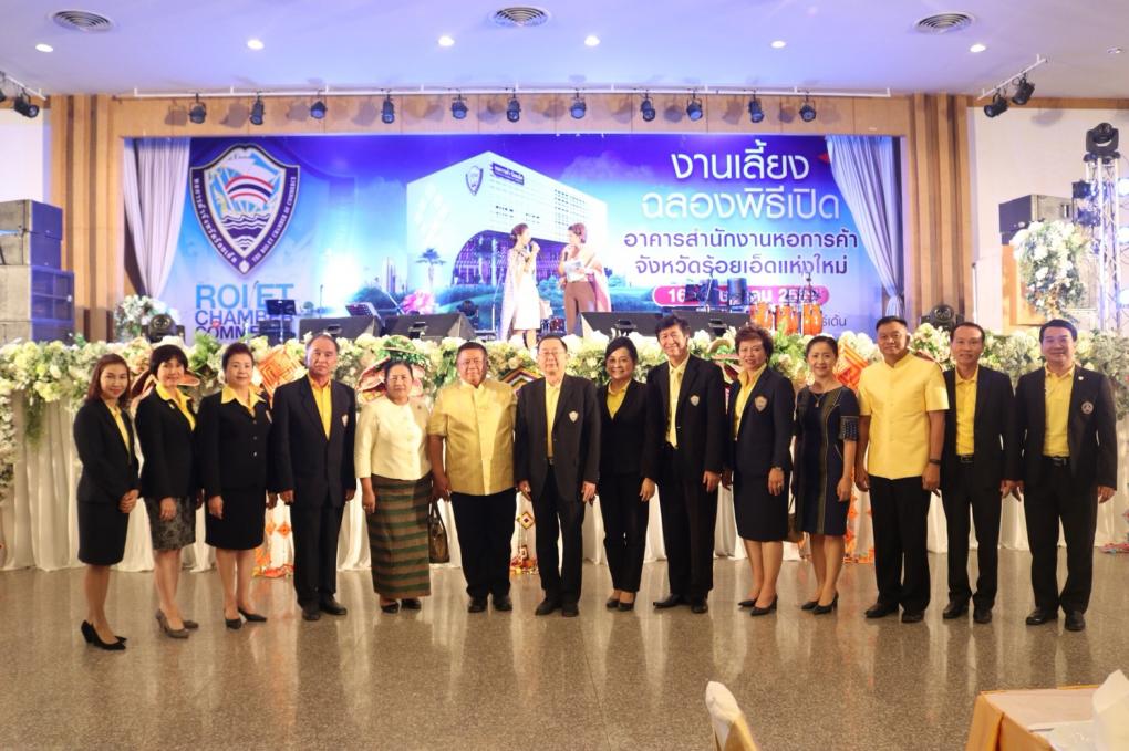 วันที่ 16 พฤษภาคม 2562 เวลา 16.30-20.00 น. ณ สำนักงานหอการค้าจังหวัดร้อยเอ็ด หอการค้าจังหวัดอุบลราชธานี นำโดย นายนิมิต สิทธิไตรย์ ประธานหอการค้าจังหวัดอุบลราชธานี พร้อมด้วย นางรัตนากร ฑีฆธนานนท์ กรรมการเลขาธิการหอการค้าจังหวัดอุบลราชธานี, นางชูศรี กตัญญุตานันท์ รองประธานกรรมการหอการค้าจังหวัดอุบลราชธานี, นางพริ้งพิศ วังทอง รองประธานกรรมการหอการค้าจังหวัดอุบลราชธานี และนางสาววิภาดา วจนะวิชากร รองกรรมการเลขาธิการหอการค้าจังหวัดอุบลราชธานี ร่วมพิธีเปิดป้ายอาคาร และงานเลี้ยงฉลอง สำนักงานหอการค้าจังหวัดร้อยเอ็ด (แห่งใหม่)