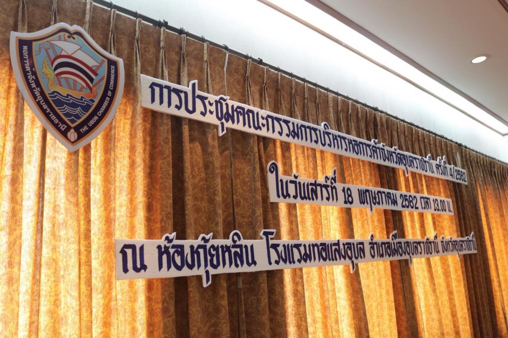 วันที่ 18 พฤษภาคม 2562 เวลา 13.00-16.00 น. ณ ห้องกุ้ยหลิน โรงแรมทอแสงอุบล อำเภอเมืองอุบลราชธานี จังหวัดอุบลราชธานี หอการค้าจังหวัดอุบลราชธานี นำโดย นายนิมิต สิทธิไตรย์ ประธานหอการค้าจังหวัดอุบลราชธานี พร้อมด้วยคณะกรรมการหอการค้าจังหวัดอุบลราชธานี ประชุมคณะกรรมการบริหารหอการค้าจังหวัดอุบลราชธานี ครั้งที่ 4/2562