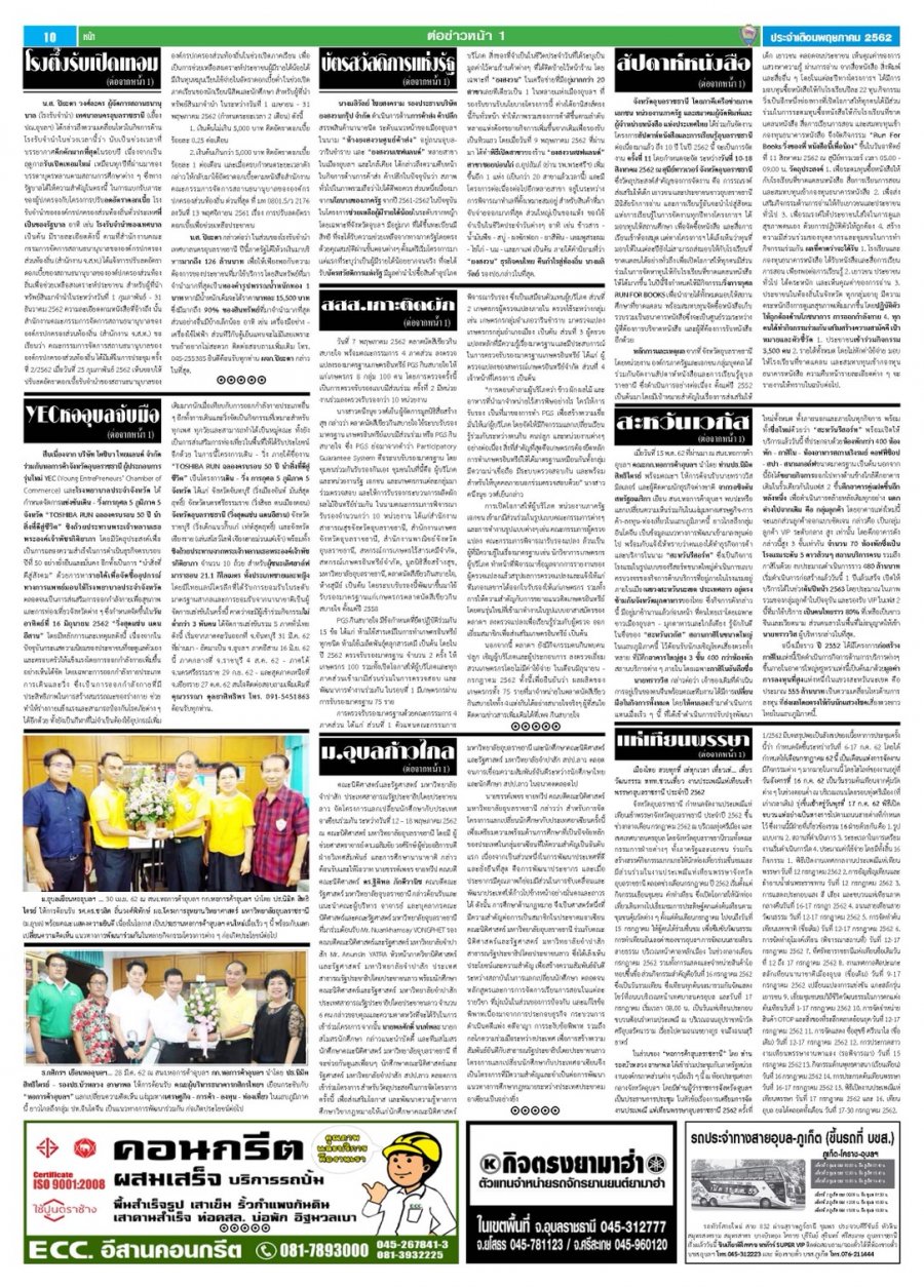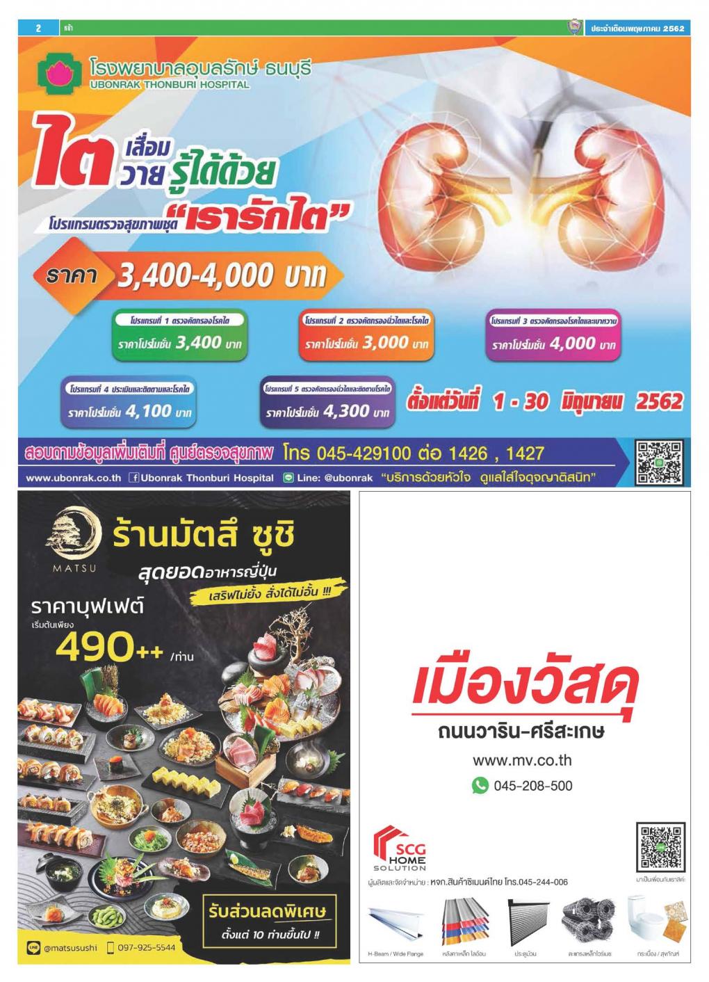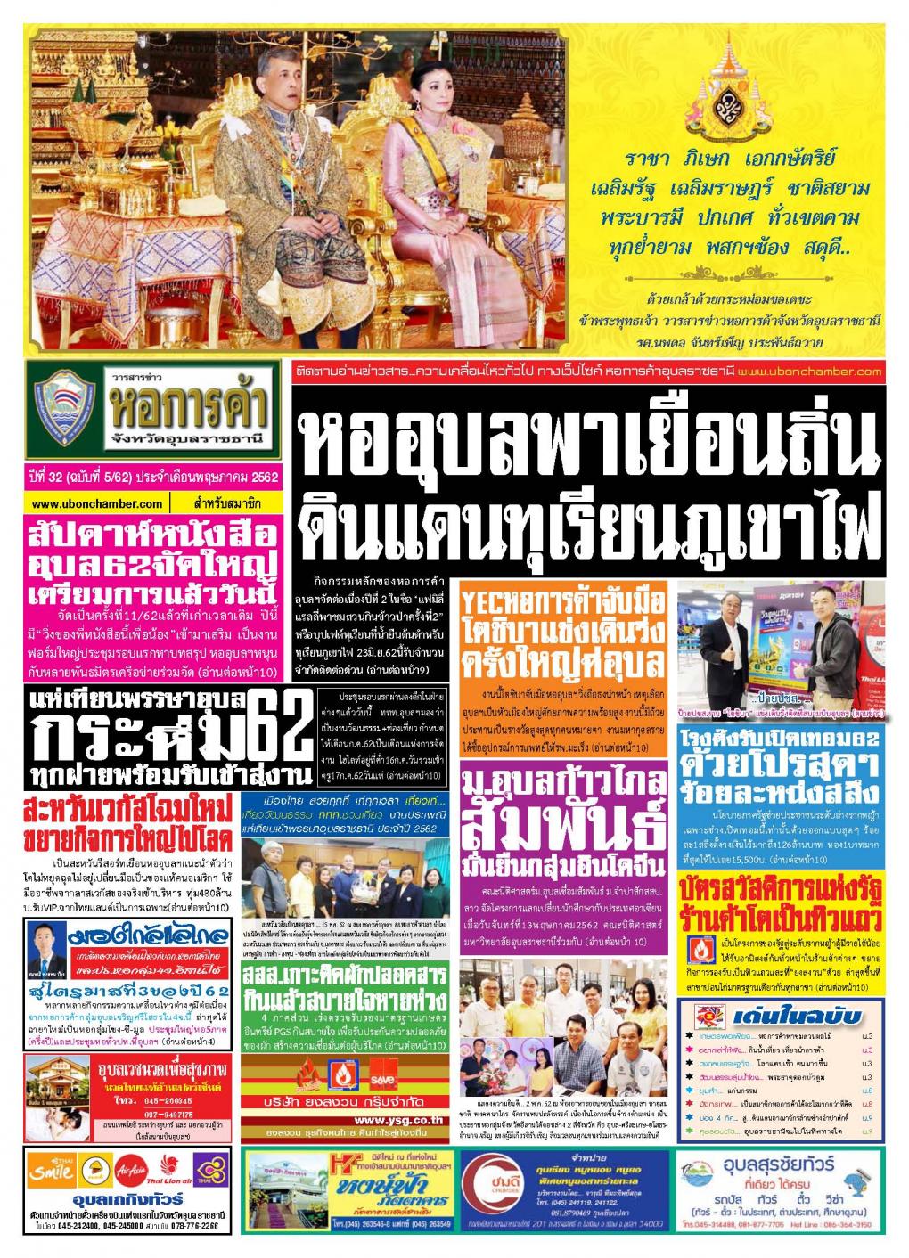 วารสารข่าว หอการค้าจังหวัดอุบลราชธานี ปีที่ 32 (ฉบับที่ 5/62) ประจำเดือนพฤษภาคม 2562