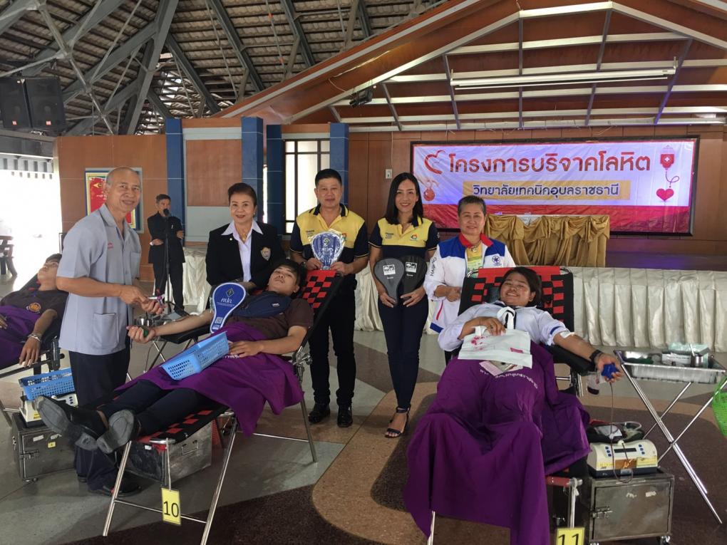 เนื่องด้วย หอการค้าจังหวัดอุบลราชธานี ได้จัดทำโครงการ "บริจาคโลหิต 64 พรรษา หอการค้าร่วมใจถวายเป็นพระราชกุศุล" โดยร่วมกับ สำนักงานเหล่ากาชาดจังหวัดอุบลราชธานี, โรงพยาบาลสรรพสิทธิประสงค์อุบลราชธานี และวิทยาลัยเทคนิคอุบลราชธานี เพื่อออกหน่วยรับบริจาคโลหิต และขอความอนุเคราะห์จำนวนยอดการบริจาคโลหิตในแต่ละครั้งเข้าตามโครงการ 0J04141 (ศูนย์ เจ ศูนย์ สี่ หนึ่ง สี่ หนึ่ง) ซึ่งเป็นโครงการ "บริจาคโลหิต 64 พรรษา หอการค้าร่วมใจถวายพระราชกุศุล" เพื่อเฉลิมพระเกียรติ 64 พรรษา สมเด็จพระกนิษฐาธิราชเจ้า กรมสมเด็จพระเทพรัตนราชสุดาฯ สยามบรมราชกุมารี หอการค้าไทยและหอการค้าแห่งประเทศไทย