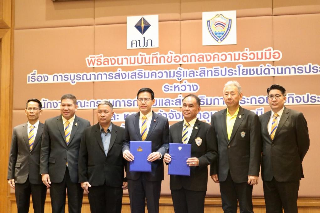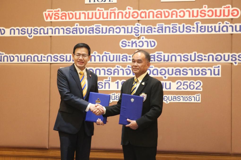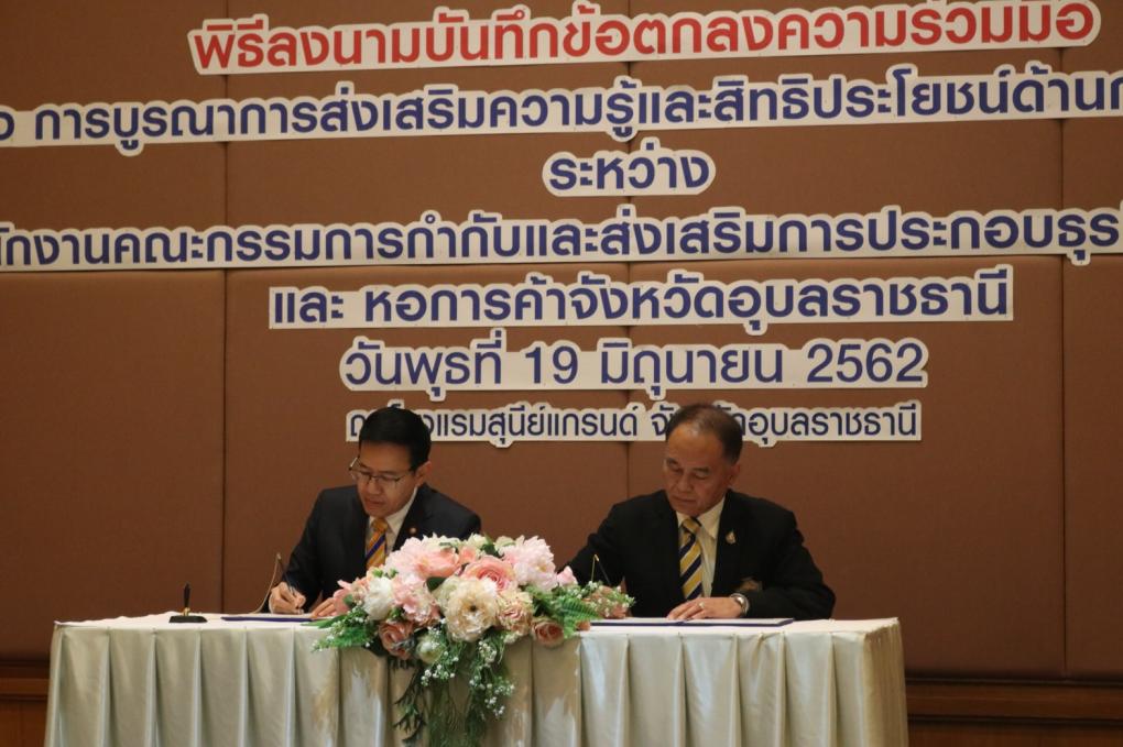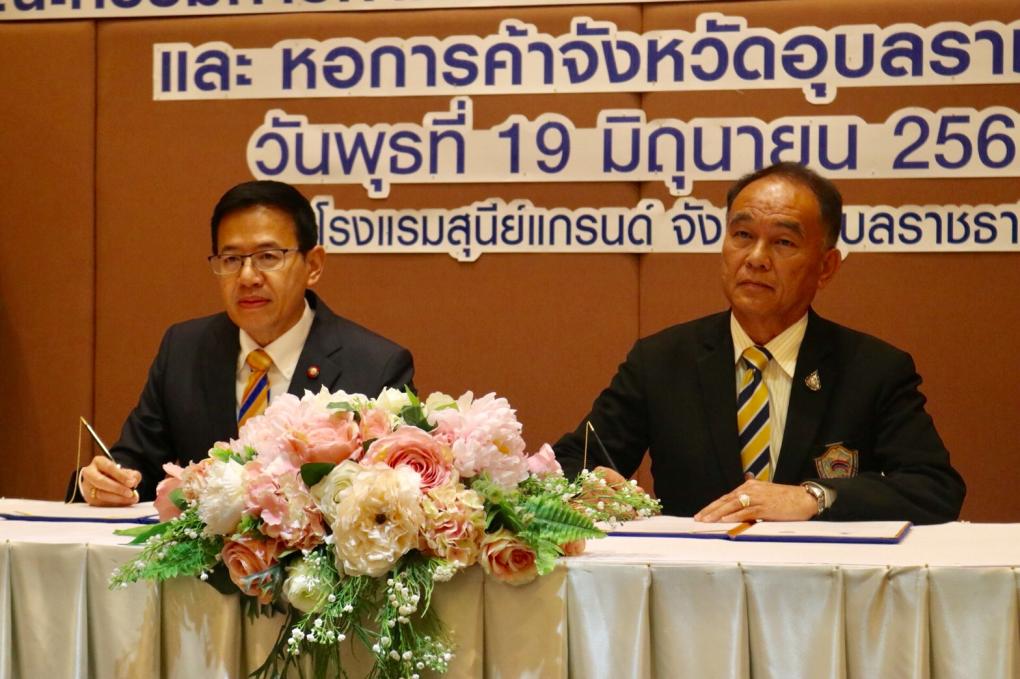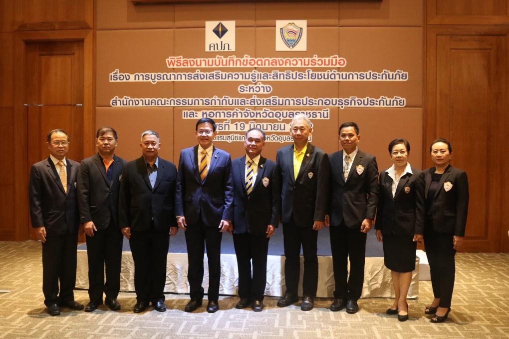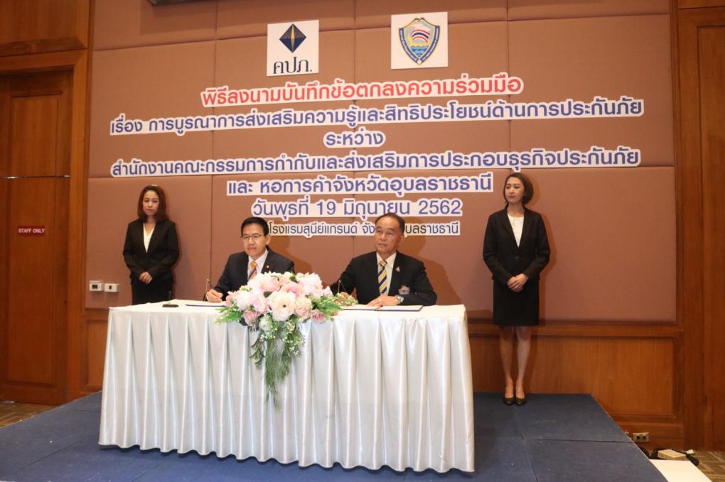 โดย นายนิมิต สิทธิไตรย์ ประธานกรรมการหอการค้าจังหวัดอุบลราชธานี เป็นผู้ลงนาม MOU ระหว่างกับ ดร.สุทธิพล ทวีชัยการ เลขาธิการ คปภ. และโดยมี นายเฉลิมพล มั่งคั่ง รองผู้ว่าราชการจังหวัดอุบลราชธานี ร่วมเป็นสักขีพยาน