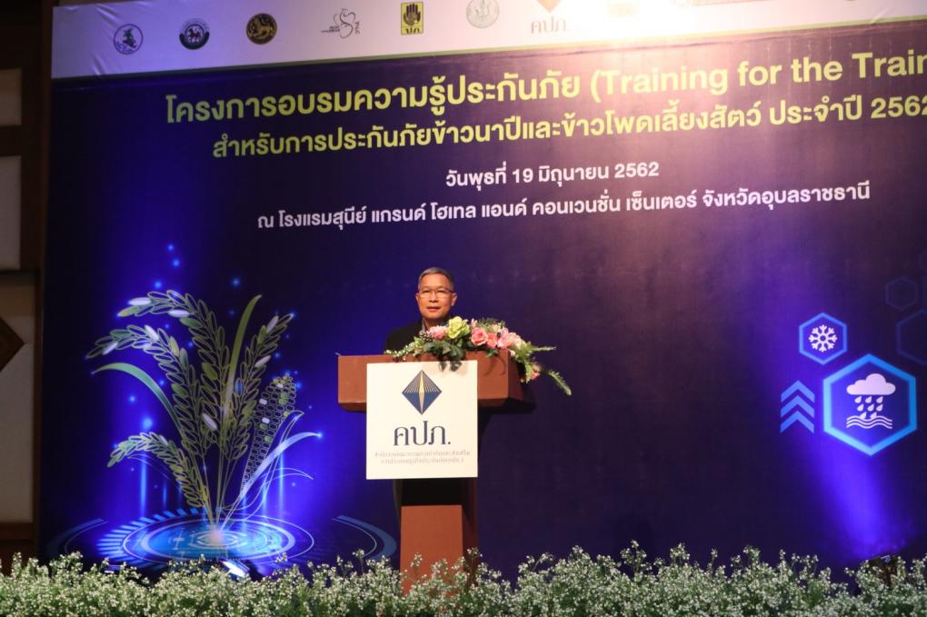 และร่วมเป็นเกียรติในพิธีเปิดงาน "อบรมความรู้ประกันภัย(Training for the Trainers) สำหรับการประกันภัยข้าวนาปีและข้าวโพดเลี้ยงสัตว์" โดยมี นาย เฉลิมพล มั่งคั่ง รองผู้ว่าราชการจังหวัดอุบลราชธานี กล่าวต้อนรับ, นายสุรินทร์ ตนะศุภผล ผู้ช่วยเลขาธิการ สายส่งเสริมและประกันภัยภูมิภาค กล่าวรายงาน และโดยมี ดร.สุทธิพล ทวีชัยการ เลขาธิการ คปภ. กล่าวเปิดการอบรม