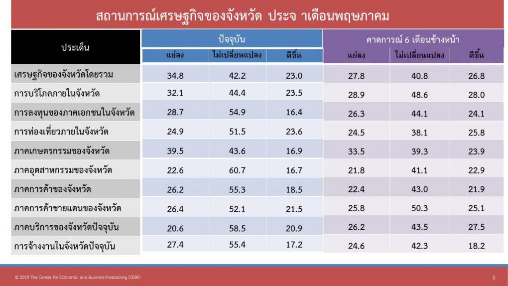 หอการค้าไทย ร่วมกับ ศูนย์พยากรณ์เศรษฐกิจและธุรกิจมหาวิทยาลัยหอการค้าไทย