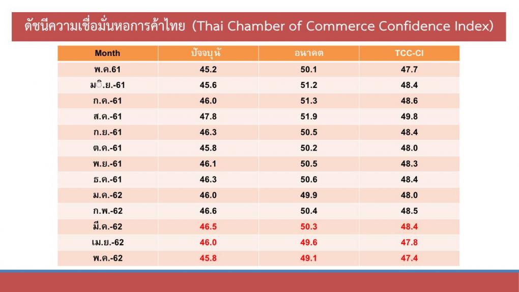 ดัชนีความเชื่อมั่นหอการค้าไทยประจาเดือนพฤษภาคม 2562 (TCC CONFIDENCE INDEX )
