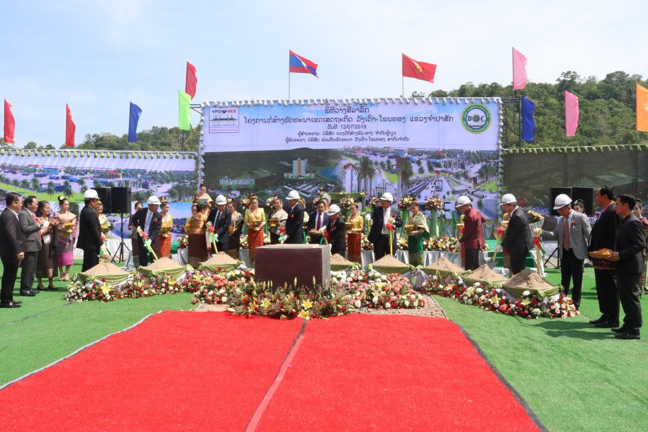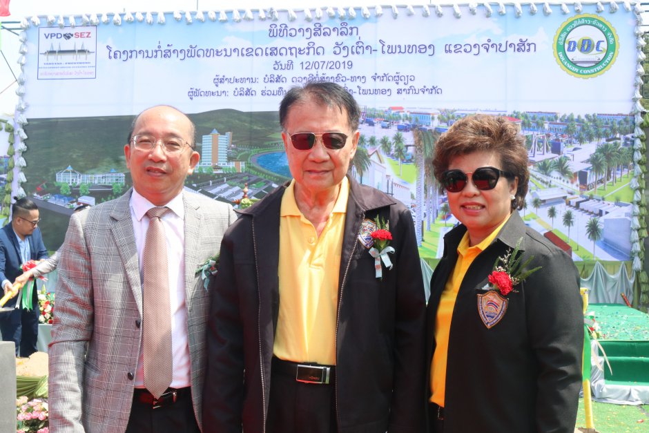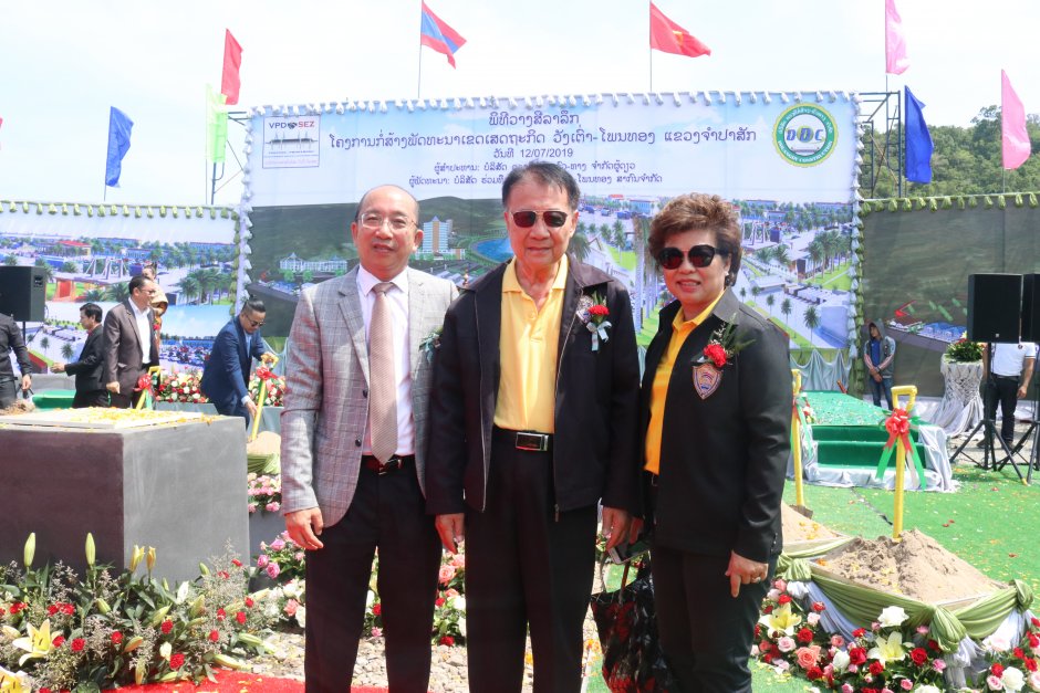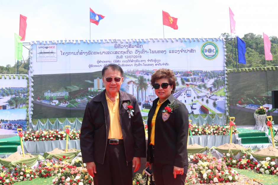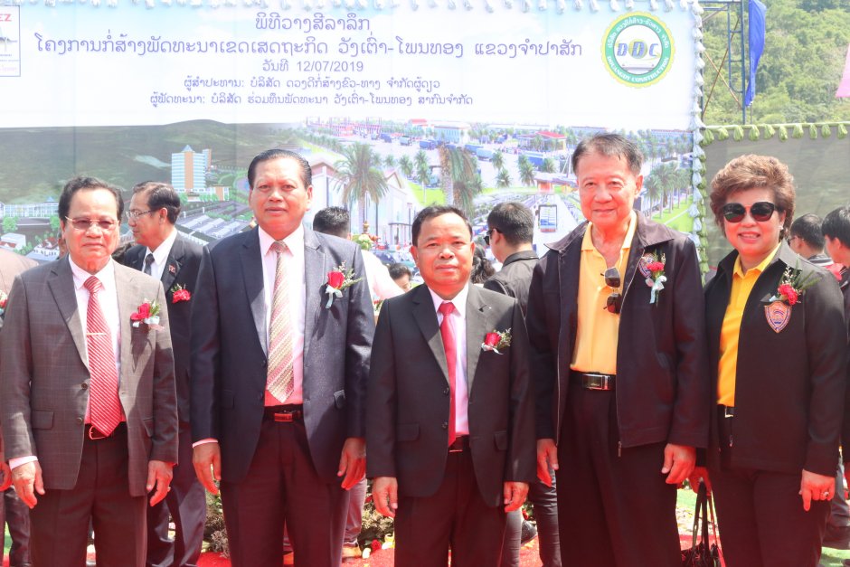 วันที่ 12 กรกฎาคม 2562 เวลา 10.00 น. ณ โครงการก่อสร้างพัฒนาเขตเศรษฐกิจ วังเต่า-โพนทอง แขวงจำปาสัก หอการค้าจังหวัดอุบลราชธานี นำคณะโดย นายชวลิต องควานิช ประธานกรรมการกิตติมศักดิ์หอการค้าจังหวัดอุบลราชธานี พร้อมด้วยนางรัตนากร ฑีฆธนานนท์ กรรมการเลขาธิการหอการค้าจังหวัดอุบลราชธานี ร่วมพิธีวางศิลาฤกษ์ โครงการก่อสร้างพัฒนาเขตเศรษฐกิจ วังเต่า-โพนทอง แขวงจำปาสัก (บ้านวังเต่า เมืองโพนทอง แขวงจำปาสัก)