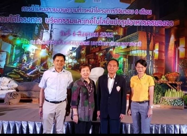 วันที่ 6 สิงหาคม 2562 ณ ห้องประชุม Ballroom C ชั้น 2 โรงแรมยูเพลส มหาวิทยาลัยอุบลราชธานี นายนิมิต สิทธิไตรย์ ประธานหอการค้าจังหวัดอุบลราชธานี ร่วมประชุมกิจกรรมนำเสนอรายงานความก้าวหน้าโครงการวิจัย รอบ 6 เดือน ภายใต้โครงการนวัตกรรมและเทคโนโลยีแปรรูปอาหารปลอดภัยครบวงจร