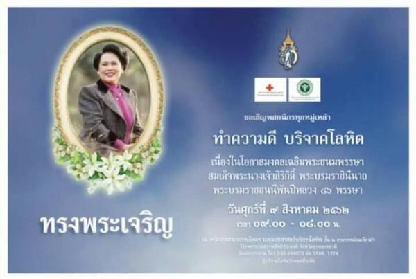 วันที่ 9 ส.ค. 2562 เวลา 08.30 น. ณ โรงพยาบาลสรรพสิทธิประสงค์ อุบลราชธานี นางพริ้งพิศ วังทอง รองประธานหอการค้าจังหวัดราชธานี (ประธานโครงการ) ร่วมรับบริจาคโลหิต เนื่องในวันเฉลิมพระชนพรรษา สมเด็จพระนางเจ้าสิริกิตติ์ พระบรมราชินีนาถ พระบรมราชชนนีพันปีหลวง 86 พรรษา และออกรับบริจาคโลหิต ประจำเดือนสิงหาคม 2562 ในโครงการ "บริจาคโลหิต 64 พรรษา หอการค้าร่วมใจถวายเป็นพระราชกุศุล
