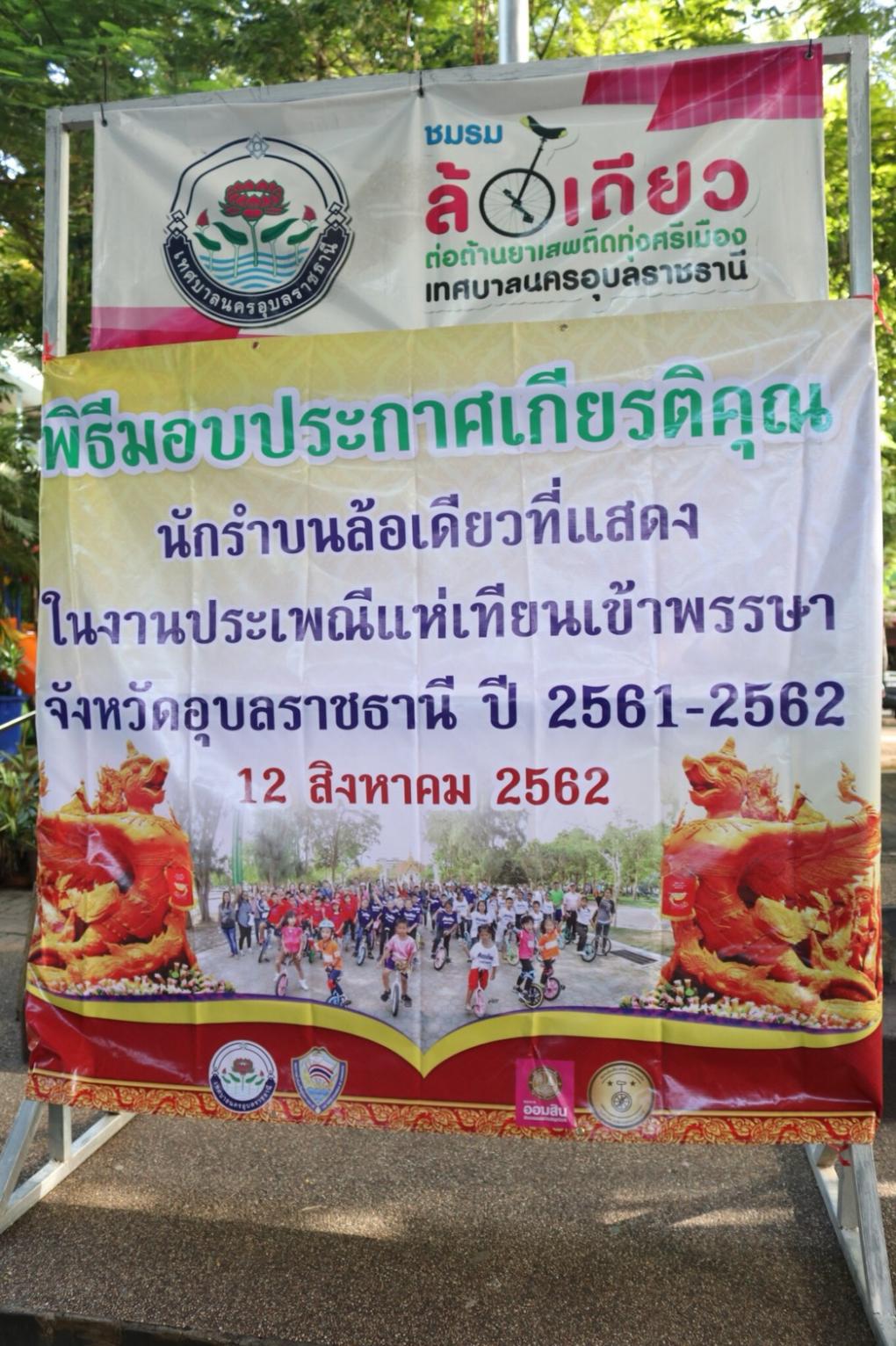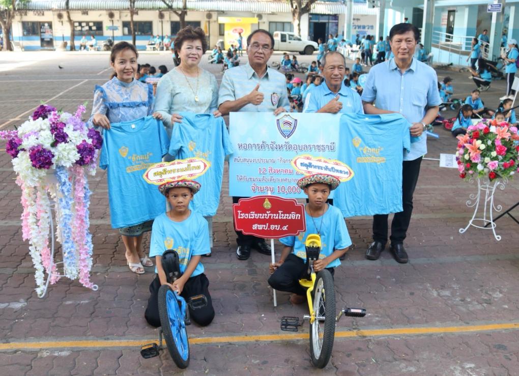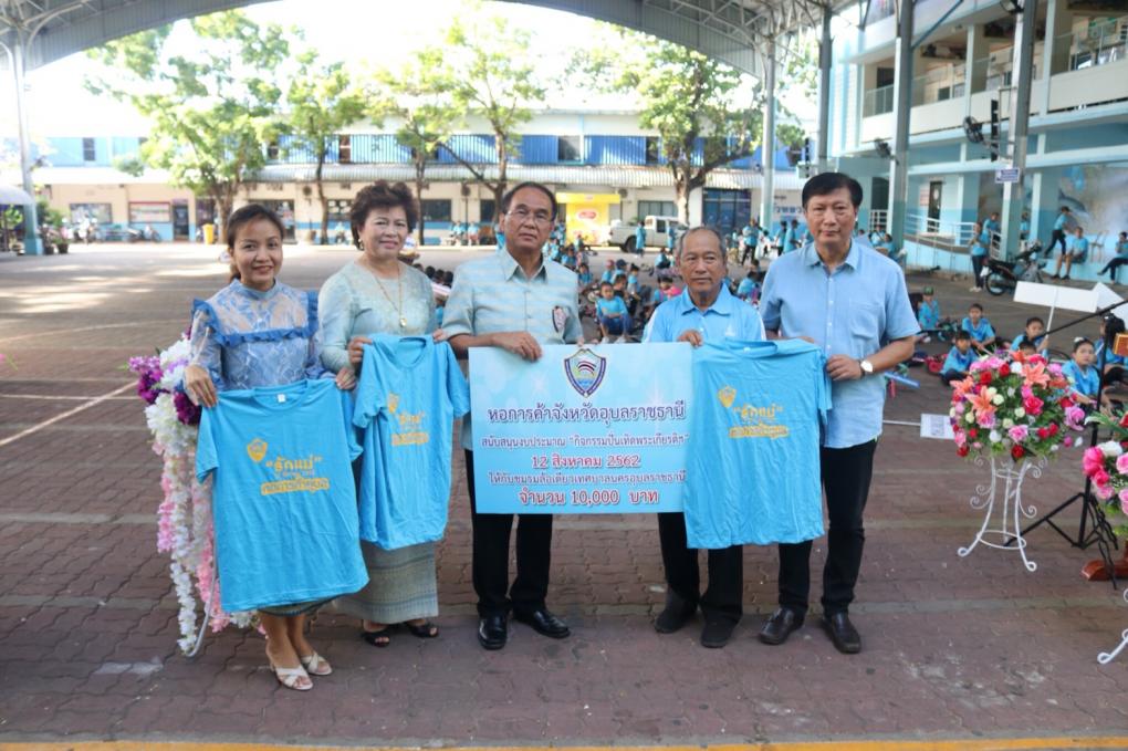 วันที่ 12 สิงหาคม 2562 เวลา 08.30 น. โรงเรียนอนุบาลอุบลราชธานี หอการค้าจังหวัดอุบลราชธานี นำโดย นายนิมิต สิทธิไตรย์ ประธานหอการค้าจังหวัดอุบลราชธานี พร้อมด้วย นางรัตนากร ฑีฆธนานนท์ กรรมการเลขาธิการหอการค้าจังหวัดอุบลราชธานี และนายสุนทร วิรนภาวิบูลย์ กรรมการบริหารหอการค้าจังหวัดอุบลราชธานี ร่วมพิธีมอบเสื้อ "รักแม่" โดย หอการค้าจังหวัดอุบลราชธานี สนับสนุนงบประมาณ "กิจกรรมเทิดพระเกียรติฯ"12 สิงหาคม 2562 ให้กับชมรมล้อเดียวเทศบาลนครอุบลราชธานี จำนวน 10,000 บาท