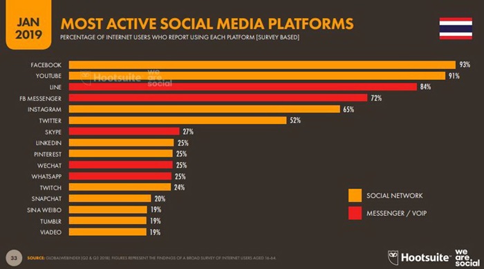 Facebook ยังเป็นอันดับ 1 ของ Social media ตามมาด้วย Youtube และ Line