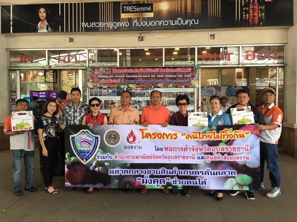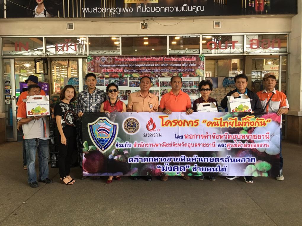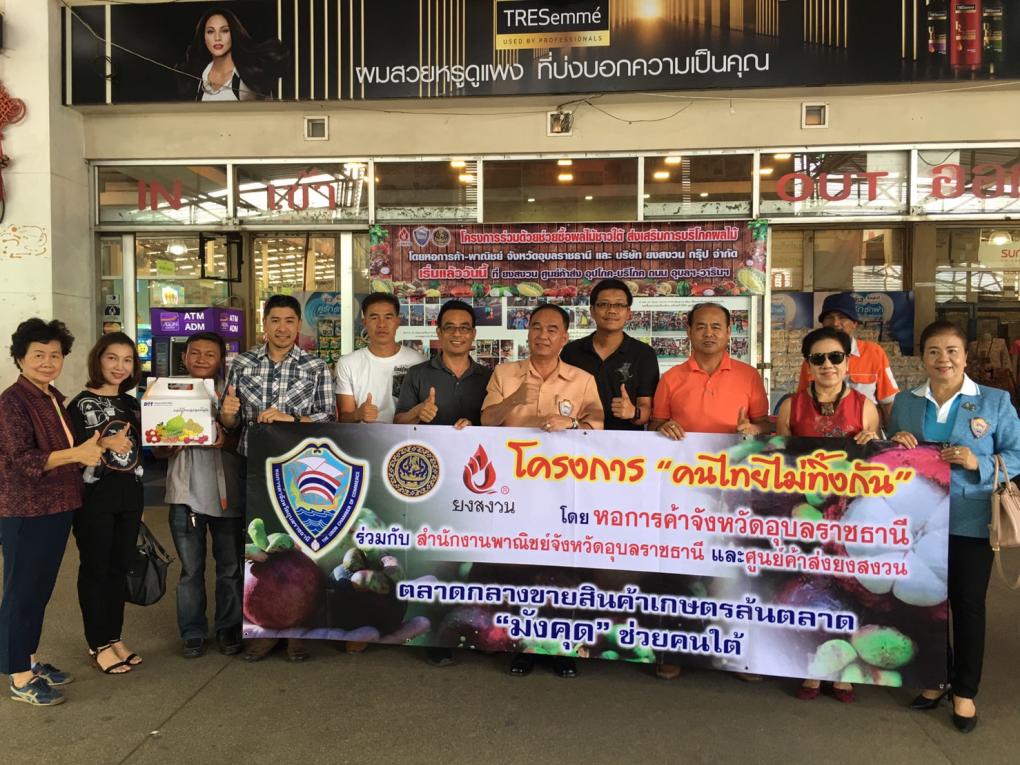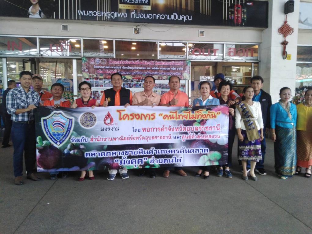 วันที่ 18 สิงหาคม 2562 เวลา 14.00 น. ณ ศูนย์ค้าส่งยงสงวน อำเภอวารินชำราบ จังหวัดอุบลราชธานี หอการค้าจังหวัดอุบลราชธานี นำโดย นายนิมิต สิทธิไตรย์ ประธานหอการค้าจังหวัดอุบลราชธานี พร้อมด้วยคณะกรรมการหอการค้าจังหวัดอุบลราชธานี ร่วมพิธีเปิดโครงการ "คนไทยไม่ทิ้งกัน"โดยหอการค้าจังหวัดอุบลราชธานี ร่วมกับสำนักงานพาณิชย์จังหวัดอุบลราชธานีและศูนย์ค้าส่งยงสงวน เปิดตลาดกลางขายสินค้าเกษตรล้นตลาด "มังคุด" ช่วยคนใต้ โดยมี นายศุภศิษย์ กอเจริญยศ รองผู้ว่าราชการจังหวัดอุบลราชธานี เป็นประธานในพิธีเปิด