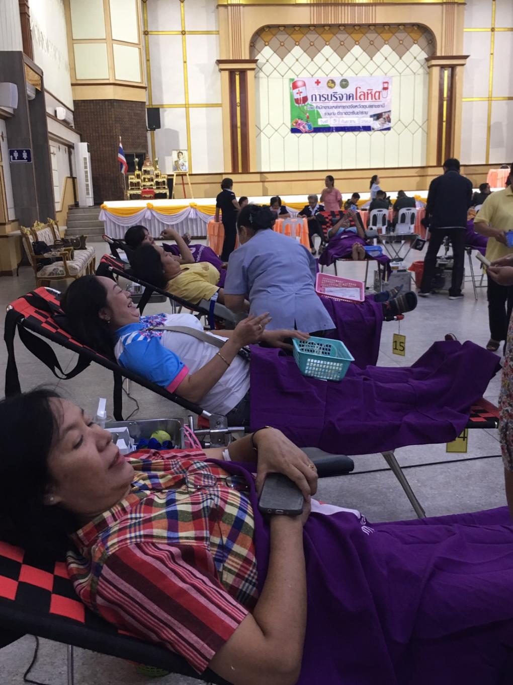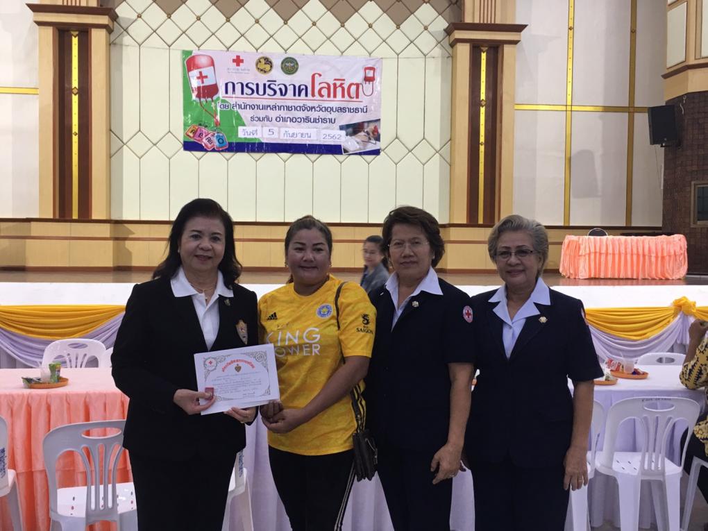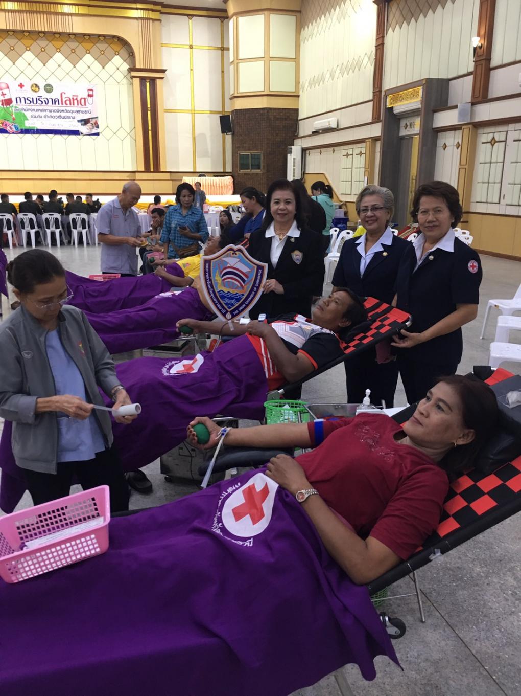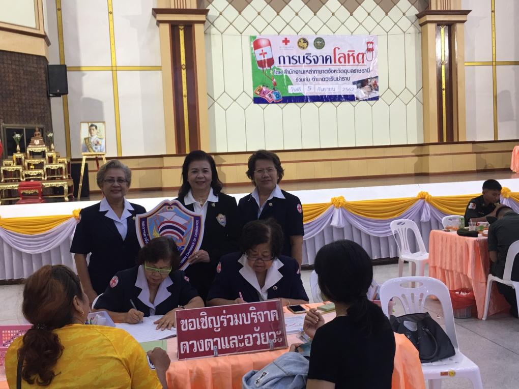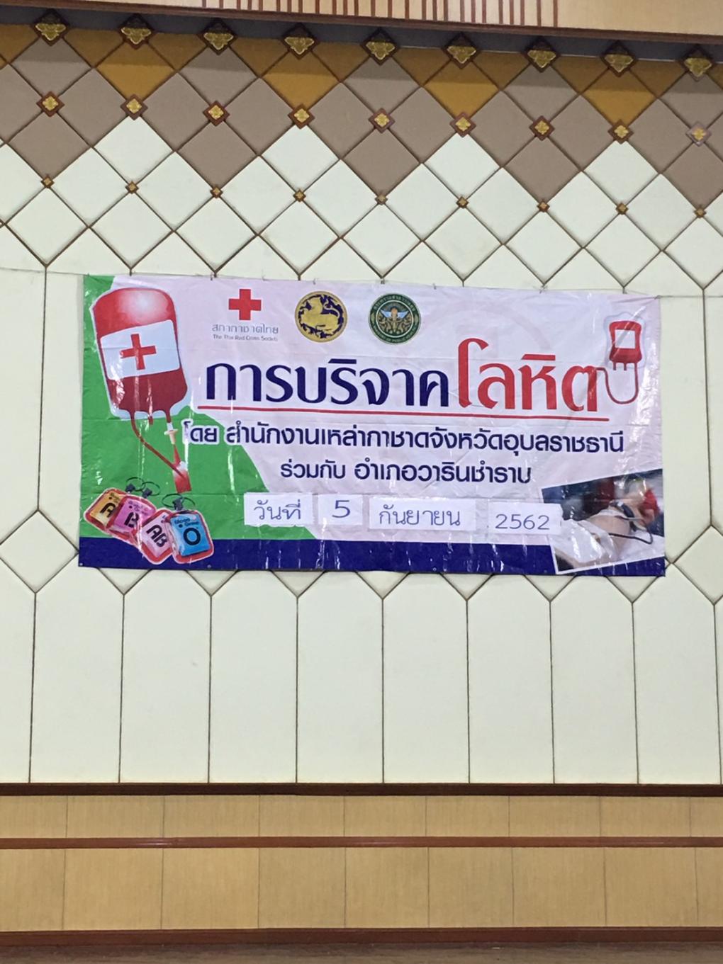 วันที่ 5 กันยายน 2562 เวลา 10.30 น.-12.00 น. ณ ศาลาประชาคมอำเภอวารินชำราบ จังหวัดอุบลราชธานี นางพริ้งพิศ วังทอง รองประธานหอการค้าจังหวัดราชธานี (ประธานโครงการ) ร่วมออกรับบริจาคโลหิต ประจำเดือน กันยายน 2562 ในโครงการ "บริจาคโลหิต 64 พรรษา หอการค้าร่วมใจถวายเป็นพระราชกุศุล