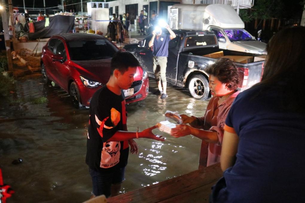 ส่งมอบข้าวกล่องข้าวเหนียวหมูทอดให้กับผู้ประสบภัยน้ำท่วมในพื้นที่ ชุมชนแถวดูโฮม(อุบลวัสดุ), ชุมชนหาดสวนยา อำเภอวารินชำราบ จำนวน 150 กล่อง และส่งมอบเข้ากล่องจำนวน 150 กล่องให้กับเจ้าหน้าที่ปฏิบัติงานเทศบาลเมืองวารินชำราบ