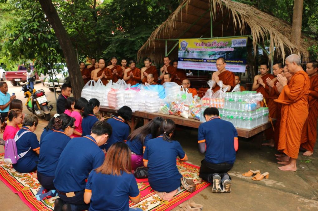 จุดที่ 1 วัดสนมหมากหญ้า บ.แกงเหนือ ต.ขามป้อม อ.เขมราฐ จ.อุบลราชธานี โดยมี พระอาจารย์มหาฤทธิเดช ผู้ใหญ่บ้านวุฒิชัย งามอินและชาวบ้านผู้ประสบภัยน้ำท่วมเป็นผู้รับมอบ ข้าวกล่อง จำนวน 250 กล่อง ถุงยังชีพ 20 ชุด น้ำดื่ม 20 แพค