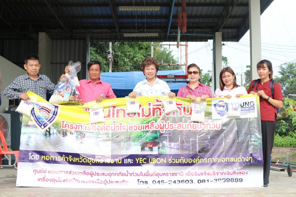 วันที่ 10 กันยายน 2562 ณ เทศบาลตำบลปทุม อำเภอเมืองอุบลราชธานี จังหวัดอุบลราชธานี หอการค้าจังหวัดอุบลราชธานี นำโดย นางรัตนากร ฑีฆธนานนท์ กรรมการเลขาธิการหอการค้าจังหวัดอุบลราชธานี พร้อมด้วยนางพริ้งพิศ วังทอง รองประธานกรรมการหอการค้าจังหวัดอุบลราชธานี ลงพื้นที่ช่วยเหลือผู้ประสบภัยน้ำท่วม ร่วมมอบข้าวสาร 100 ถุง ช่วยเหลือเขตพื้นที่ ชุมชน ต. ปทุม อำเภอเมืองอุบลราชธานี จังหวัดอุบลราชธานี "คนไทยไม่ทิ้งกัน" โครงการส่งต่อน้ำใจ ช่วยเหลือผู้ประสบภัยน้ำท่วม โดย หอการค้าจังหวัดอุบลราชธานี และYEC UBON ร่วมกับองค์กรภาคเอกชนต่างๆ