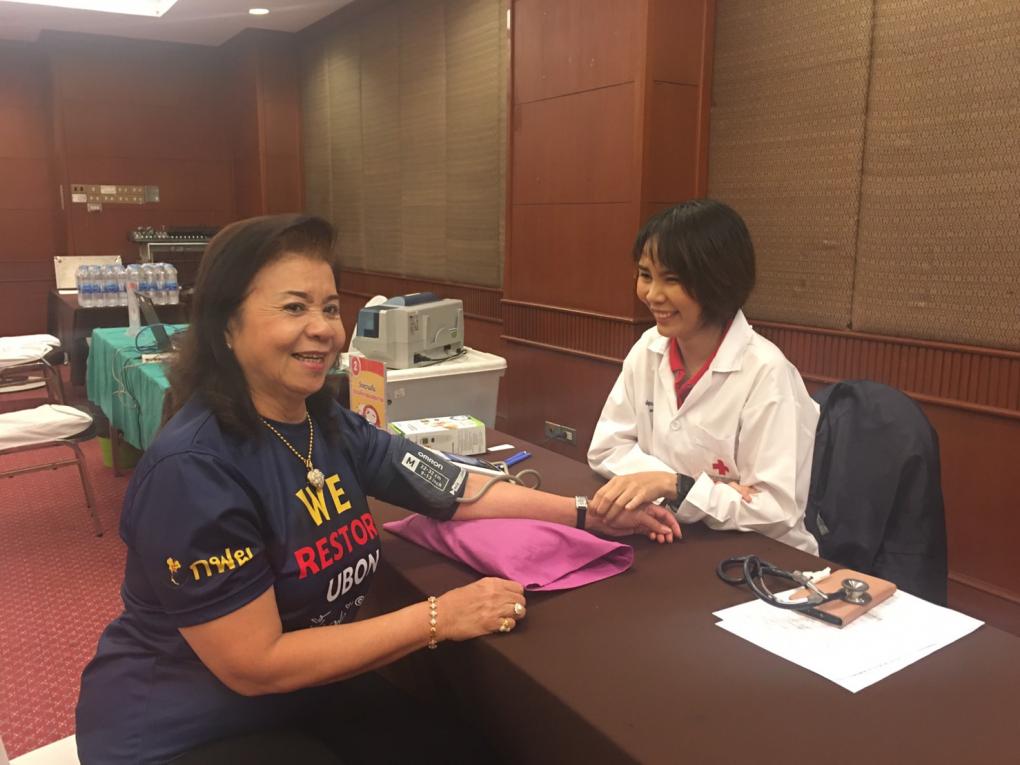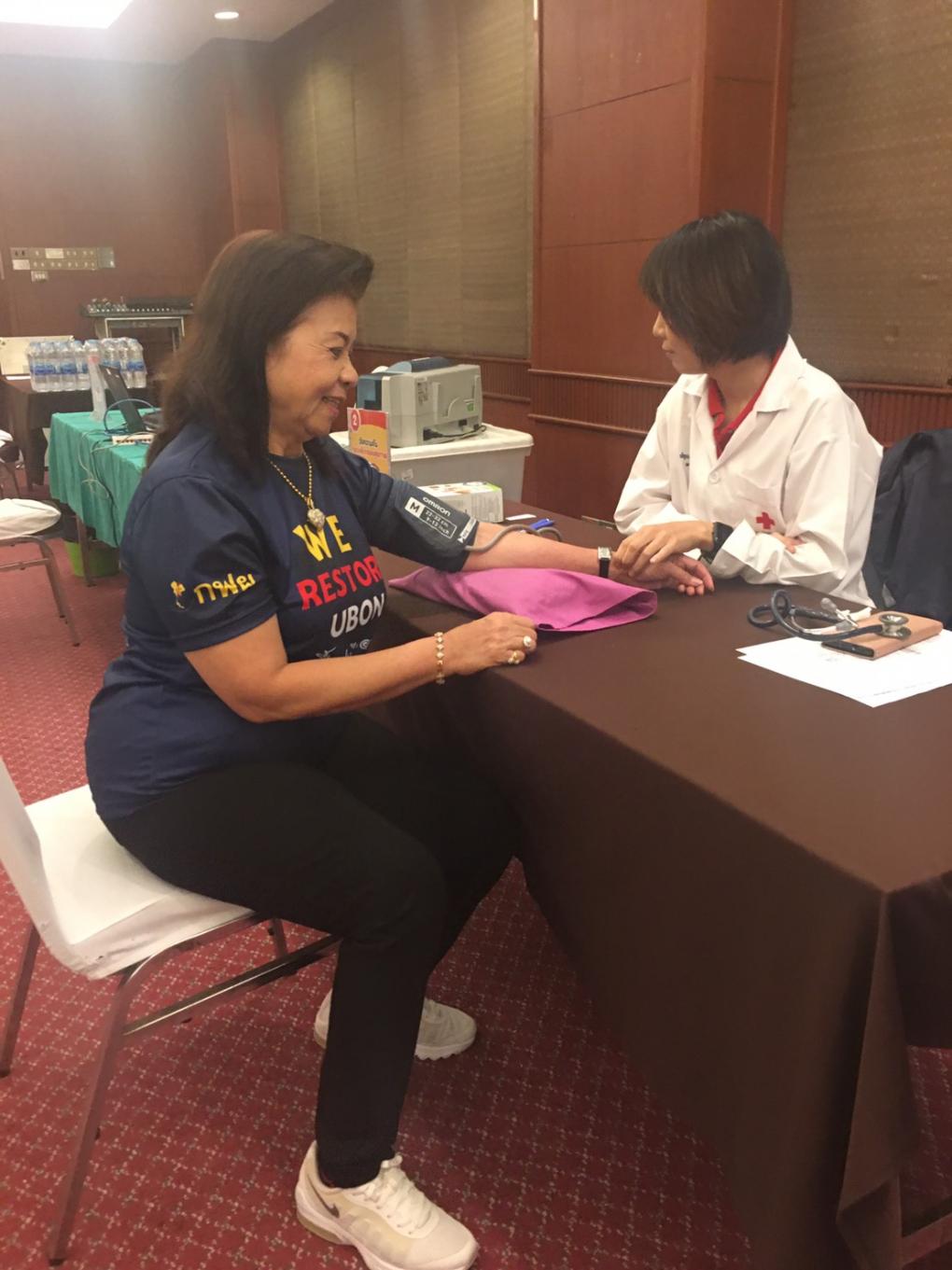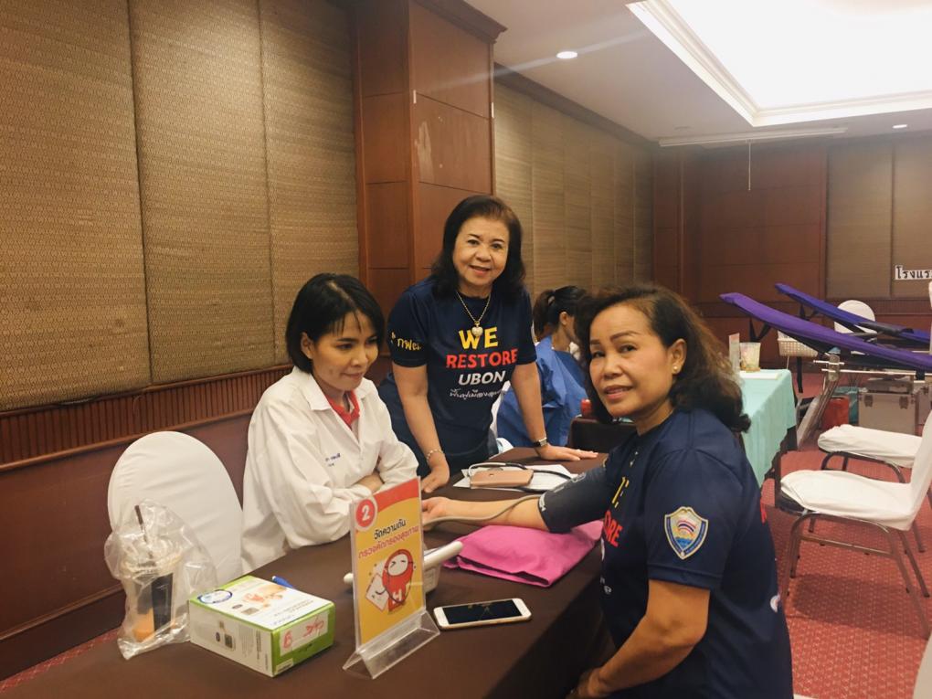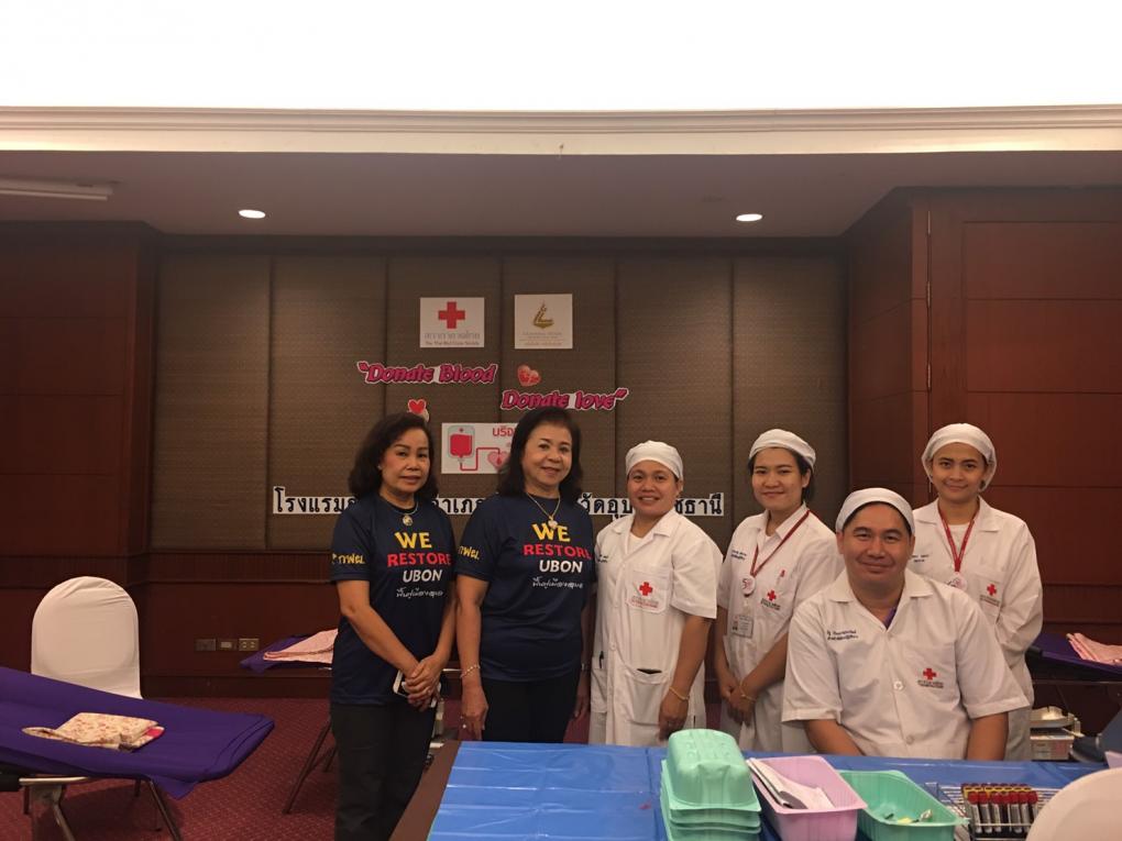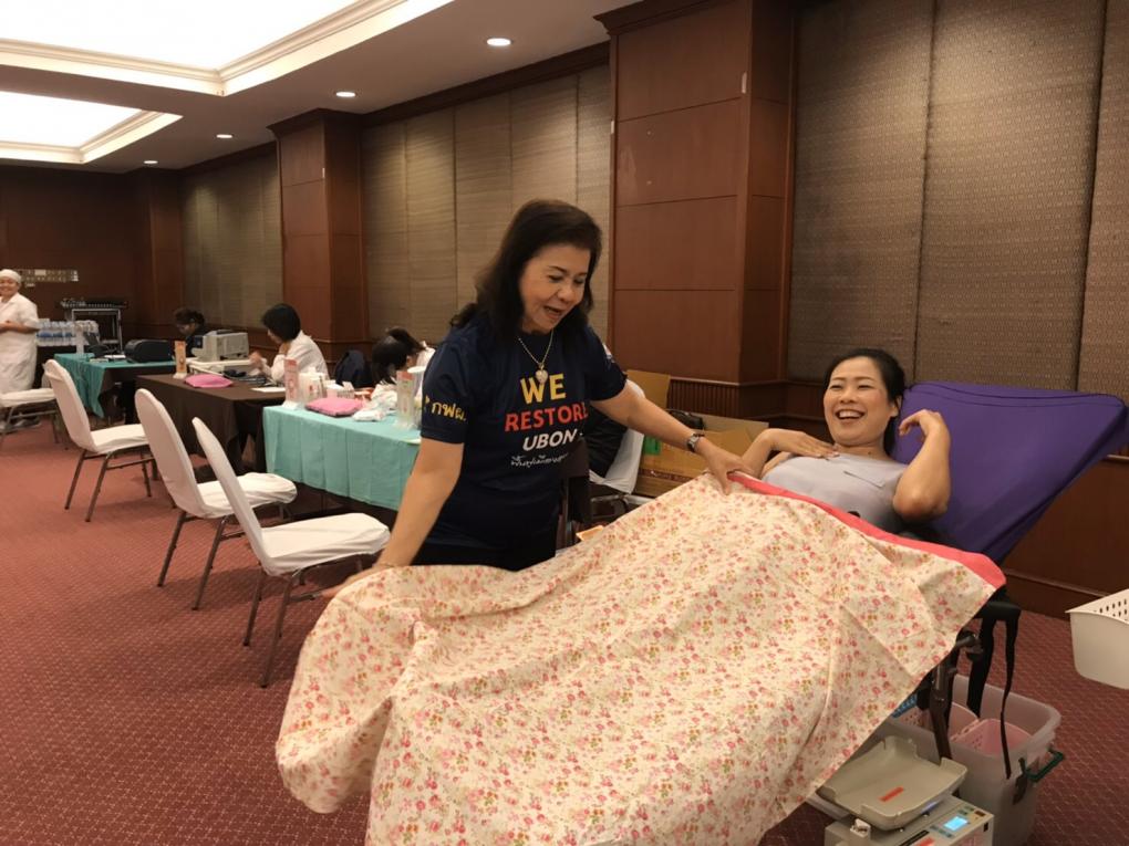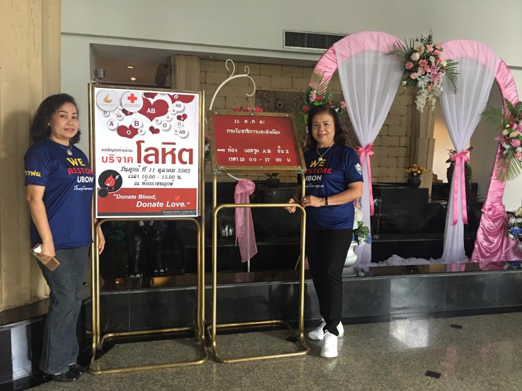 วันที่ 11 ตุลาคม 2562 เวลา 10:00 น.-12.00 น. ณ โรงแรมลายทอง จังหวัดอุบลราชธานี นางพริ้งพิศ วังทอง รองประธานกรรมการหอการค้าจังหวัดราชธานี (ประธานโครงการ) พร้อมด้วย นางนิสา กองแก้ว สมาชิกหอการค้าค้าจังหวัดอุบลราชธานี ร่วมออกรับบริจาคโลหิต ประจำเดือนตุลาคม 2562 ในโครงการ "บริจาคโลหิต 64 พรรษา หอการค้าร่วมใจถวายเป็นพระราชกุศุล