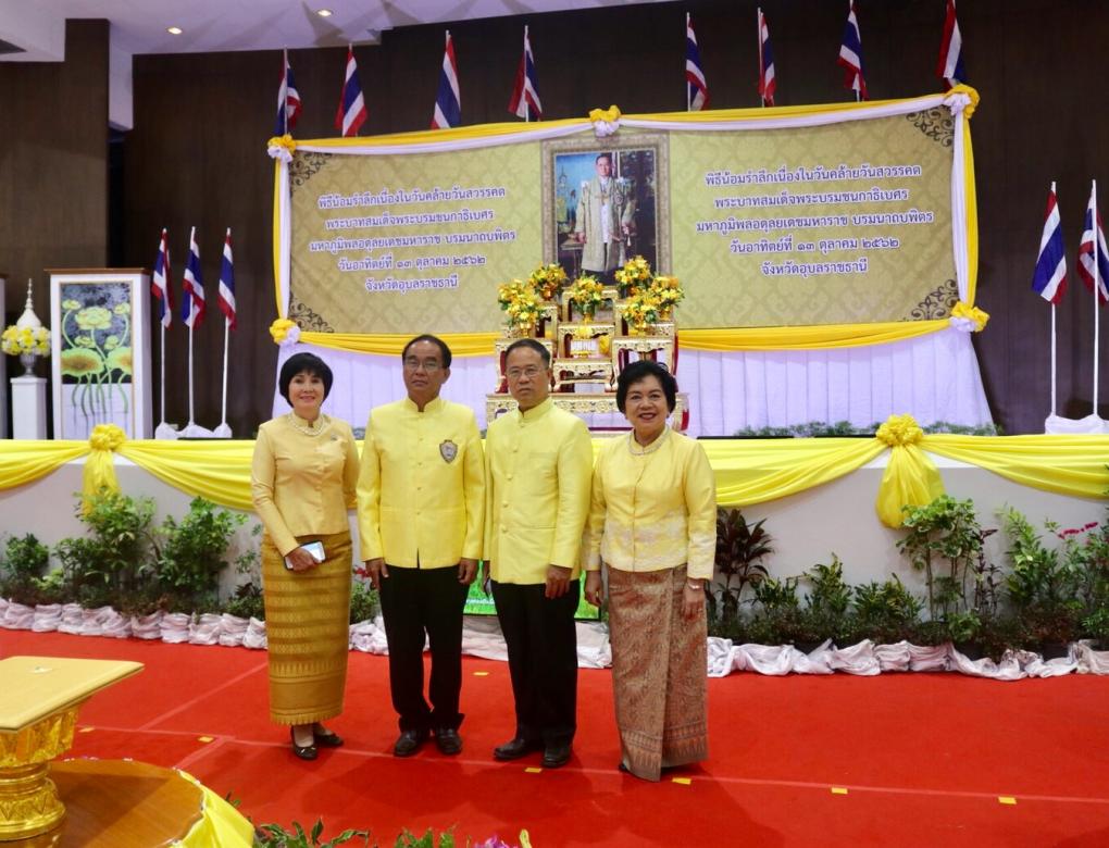 วันที่ 13 ตุลาคม 2562 เวลา 18.30 น. ณ หอประชุมจังหวัดอุบลราชธานี (ด้านหลัง ศาลากลางจังหวัดอุบลราชธานี) หอการค้าจังหวัดอุบลราชธานี นำโดย นายนิมิต สิทธิไตรย์ ประธานหอการค้าจังหวัดอุบลราชธานี พร้อมด้วยคณะกรรมการหอการค้าจังหวัดอุบลราชธานี ร่วมพิธีจุดเทียนเพื่อน้อมรำลึกในพระมหากรุณาธิคุณ ในพิธีน้อมรำลึกเนื่องในวันคล้ายวันสวรรคตพระบาทสมเด็จพระบรมชนกาธิเบศร มหาภูมิพลอดุลยเดชมหาราช บรมนาถบพิตร โดยมี นายสฤษดิ์ วิฑูรย์ ผู้ว่าราชการจังหวัดอุบลราชธานี เป็นประธานในพิธี