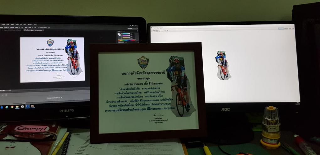 แล้วคิดหาวิธี ทำให้สำเร็จ เพื่อมอบให้ พี่ติ๊ก ชิโร่ แทนคำขอบคุณ ไปเลือกกรอบเอง ทำเองทุกขั้นตอน รวม แล้ว ตั้งแต่ เที่ยงถึง 18.00 น เป็นอันเสร็จเรียบร้อยพร้อมมอบ ให้ คนพิเศษ แทนคำขอบคุณ เราชาวอุบลขพร้อมใจ ขอบคุณ พี่ติ๊กและคณะ กันทุกคน ทั้งจังหวัดอุบล ปล.ตั้งใจจะ ไปมอบให้ วันนี ในนาม หอการค้าอุบลราชธานี