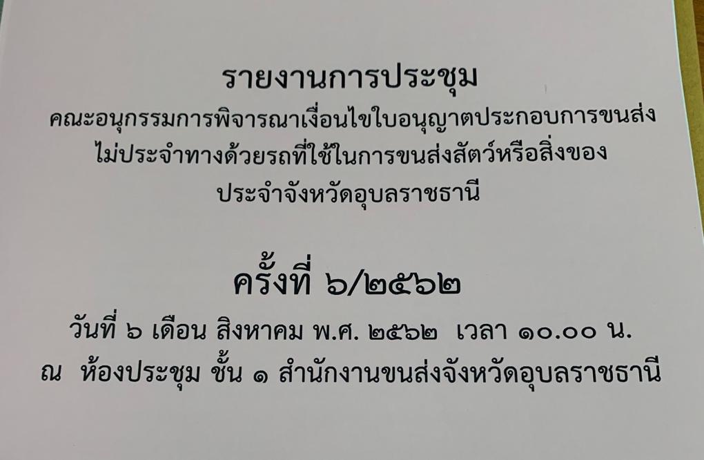 วันที่ 22 ตุลาคม 2562 เวลา 10.00 น. ณ ห้องประชุมชั้น 1 สำนักงานขนส่งจังหวัดอุบลราชธานี แห่งที่ 2 นายมงคล จุลทัศน์ รองประธานกรรมการหอการค้าจังหวัดอุบลราชธานี ร่วมประชุมคณะอนุกรรมการพิจารณาเงื่อนไขใบอนุญาตประกอบการขนส่งไม่ประจำทางด้วยรถที่ใช้ในการขนส่งสัตว์หรือสิ่งของประจำจังหวัดอุบลราชธานี ครั้งที่7/2562 โดยมีหน่วยงานที่เกี่ยวข้องร่วมประชุมหารือในครั้งนี้