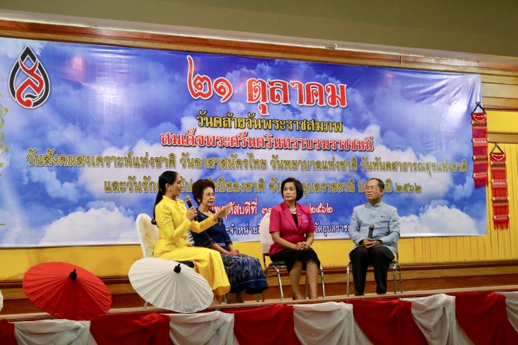 วันที่ 31 ตุลาคม 2562 เวลา 10.00 น. ณ ศูนย์ OTOP Center อุบลราชธานี หอการค้าจังหวัดอุบลราชธานี นำโดย นายนิมิต สิทธิ์ไตรย์ ประธานหอการค้าจังหวัดอุบลราชธานี พร้อมด้วยนางรัตนากร ฑีฆธนานนท์ กรรมการเลขาธิการหอการค้าจังหวัดอุบลราชธานี, นายมงคล จุลทัศน์ รองประธานกรรมการหอการค้าจังหวัดอุบลราชธานี และคุณสนั่น สุตัญตั้งใจ รองประธานกรรมการหอการค้าจังหวัดอุบลราชธานี ร่วมงานเทิดพระเกียรติสมเด็จพระศรีนครินทราบรมราชชนนี ประจำปี 2562 "วันสังคมสงเคราะห์แห่งชาติและวันอาสาสมัครไทย" และร่วมแสดงความยินดีกับผู้ที่ได้รับรางวัล