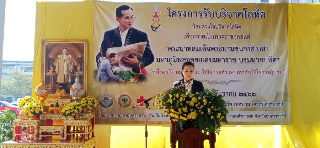 วันที่ 11 ธันวาคม 2562 ณ กองบรรเทาสาธารณภัย เทศบาลนครอุบลราชธานี นางพริ้งพิศ วังทอง รองประธานหอการค้าจังหวัดอุบลราชธานี (ประธานโครงการ) ร่วมกิจกรรมโครงการรับบริจาคโลหิต น้อมดวงใจบริจาคโลหิต เพื่อถวายเป็นพระราชกุศุลแด่ พระบาทสมเด็จพระบรมชนกาธิเบศร มหาภูมิพลอดุลยเดชมหาราช บรมนาถบพิตร (หนึ่งคนให้ หลายคนรับ ให้โอกาสตัวเอง เท่ากับให้โอกาสผู้ป่วย) และออกรับบริจาคโลหิต ประจำเดือน ธันวาคม 2562 ในโครงการ "บริจาคโลหิต 64 พรรษา หอการค้าร่วมใจถวายเป็นพระราชกุศุล"