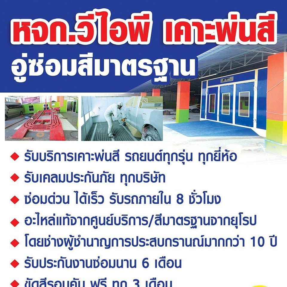 อู่วีไอพี เคาะพ่นสี ยินดีต้อนรับสมาชิกหอการค้า” มอบสิทธิพิเศษส่วนลดสำหรับสมาชิกหอการค้าสูงสุดถึง 1,000 บาท ตามเงื่อนไขการให้ส่วนลดของทางร้านและมีบริการสำรองให้บริการฟรี 7 วัน