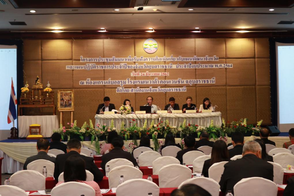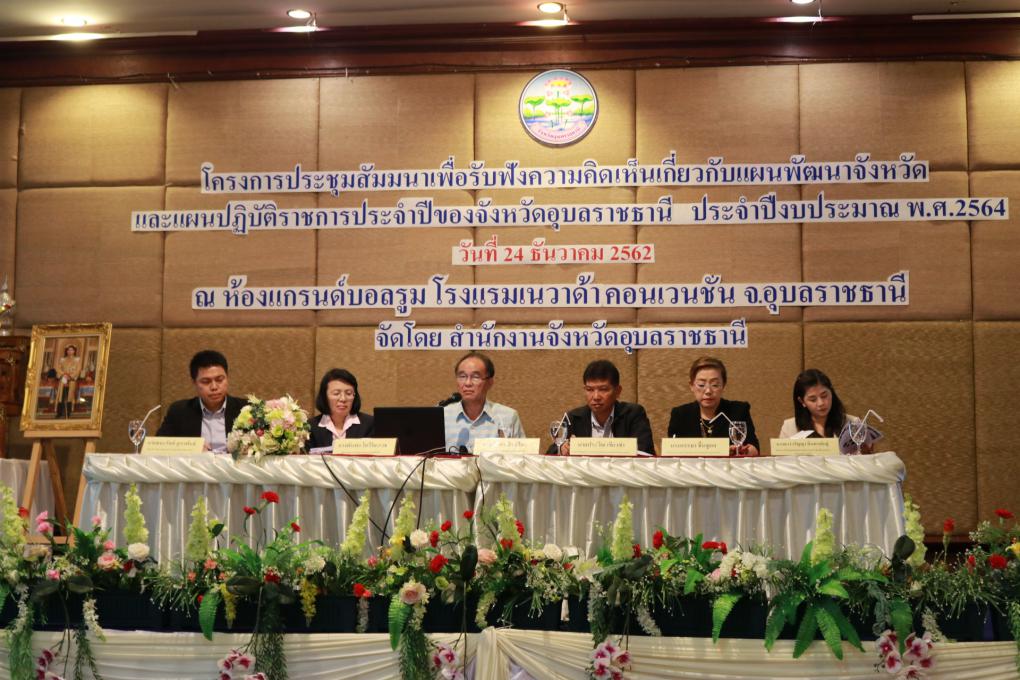 วันที่ 24 ธันวาคม 2562 เวลา 08.30 น. นายนิมิต สิทธิไตรย์ ประธานหอการค้าจังหวัดอุบลราชธานี ร่วมขึ้นกล่าวแสดงความคิดเห็นในมุมมองของภาคเอกชน ต่อการประชุมสัมมนาเพื่อรับฟังความคิดเห็นเกี่ยวกับแผนพัฒนาจังหวัดและแผนปฏิบัติราชการประจำปีของจังหวัด ประจำปีงบประมาณ พ.ศ.2564 โดยมี นายสฤษดิ์ วิฑูรย์ ผู้ว่าราชการจังหวัดอุบลราชธานี ประธานกล่าวเปิดการประชุมสัมนาฯ และโดย นายเสนีย์ ส้มเขียวหวาน หัวหน้าสำนักงานจังหวัดอุบลราชธานี กล่าวรายงานวัตถุประสงค์และมี ภาคราชการ ภาคเอกชน ภาคประชาสังคม เข้าร่วมสัมนาฯ