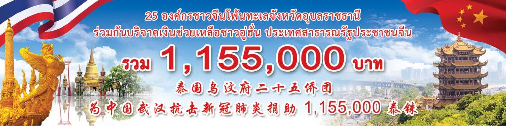 หอการค้าจังหวัดอุบลราชธานี โดย นางรัตนากร ฑีฆธนานนท์ เลขาธิการหอการค้าจังหวัดอุบลราชธานี และนางพริ้งพิศ วังทอง รองประธานหอการค้าจังหวัดอุบลราชธานี ร่วมบันทึกภาพและร่วมส่งมอบเงินบริจาคจำนวน 10,000 บาท (หนึ่งหมื่นบาทถ้วน) เป็นความร่วมมือกันระหว่าง 25 องค์กรชาวจีนโพ้นทะเลจังหวัดอุบลราชธานี เพื่อร่วมกันยื่นมือเข้าให้ความช่วยเหลือ เพื่อบรรเทาความทุกข์ของชาวอู่ฮั่น สาธารณรัฐประชาธิปไตยประชาชนจีน ที่ประสบภาวะการแพร่ระบาดของโคโรน่าไวรัส หรือ "COVID-19"
