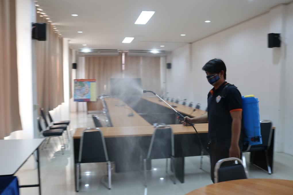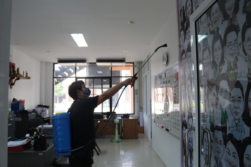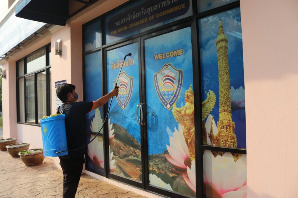 วันที่ 14 มีนาคม 2563 เวลา 16.00 น. ณ สำนักงานหอการค้าจังหวัดอุบลราชธานี หอการค้าจังหวัดอุบลราชธานี ได้ดำเนินการพ่นยาฆ่าเชื้อตามมาตรการป้องกันไวรัส COVID – 19 โดยในเบื้องต้นเจ้าหน้าที่/นักศึกษาฝึกประสบการณ์ได้ฉีดพ่นน้ำยาฆ่าเชื้อ โดยใช้เครื่องพ่นยาความดันสูง บริเวณภายในสำนักงาน ห้องประชุม ห้องรับรอง ห้องครัวและบริเวณรอบอาคารสำนักงานทั้งหมด เพื่อป้องกันการแพร่ระบาดของเชื้อไวรัสดังกล่าว นอกจากนี้ยังได้ขอความร่วมมือจากเจ้าหน้าที่ให้สวมใส่หน้ากากอนามัย ใช้เจลล้างมือที่สำนักงานหอการค้าจังหวัดอุบลราชธานีได้จัดเตรียมไว้ให้ในบริเวณห้องต่างๆ และขอให้เจ้าหน้าที่ทำความสะอาดโดยใช้น้ำยาฆ่าเชื้อบริเวณโต๊ะทำงาน ห้องทำงาน โต๊ะประชุม เป็นประจำอีกด้วย.