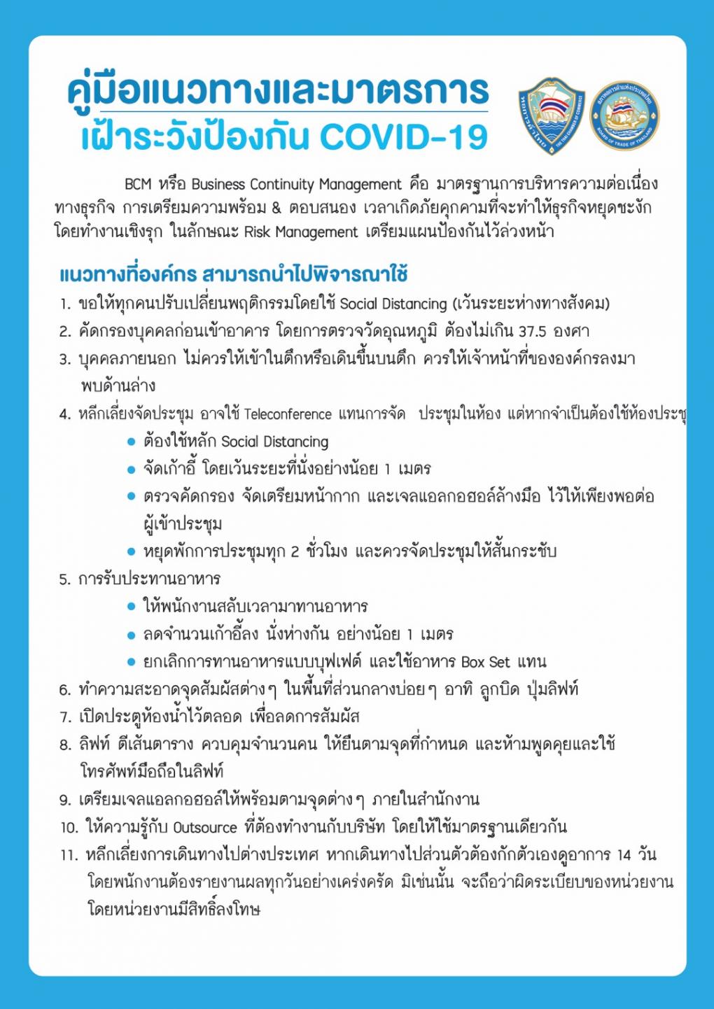 คู่มือแนวทางและมาตรการเฝ้าระวังป้องกัน COVID-19 หอการค้าไทยและสภาหอการค้าแห่งประเทศไทย
