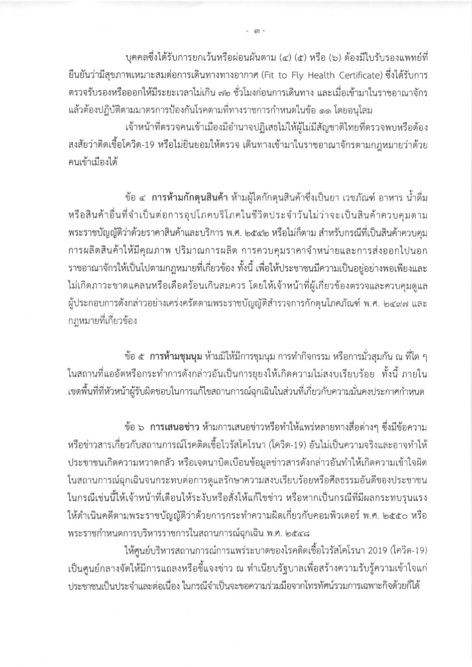 1. ห้ามกักตุนสินค้า ห้ามเพิ่มราคาสินค้า และห้ามปล่อยข่าวที่เป็นข้อมูลเท็จโดยเด็ดขาด