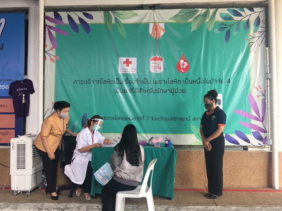 ทั้งนี้ นางพริ้งพิศ วังทอง รองประธานหอการค้าจังหวัดอุบลราชธานี สนับสนุนหน้ากากผ้า จำนวน 80 ชิ้น เป็นเงิน 1,000 บาท เพื่อมอบให้ผู้ที่มาบริจาคโลหิต.