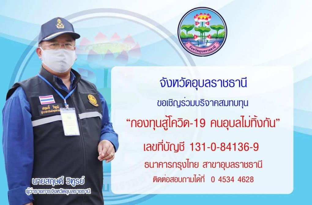 ขอเชิญร่วมบริจาคสมทบทุน "กองทุนสู้โควิด-19 คนอุบลไม่ทิ้งกัน"