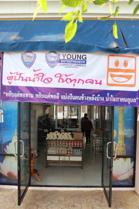 วันที่ 13 พฤษภาคม 2562 เวลา 10.00 น. ณ บริเวณหน้าจวนผู้ว่าจังหวัดอุบลราชธานี หอการค้าจังหวัดอุบลราชธานี โดย นายนิมิต สิทธิไตรย์ ประธานหอการค้าจังหวัดอุบลราชธานี พร้อมด้วยคณะกรรมการฯ ร่วมพิธีเปิด “ตู้ปันสุข” เป็นปฐมฤกษ์ จุดที่ 1 บริเวณหน้าจวนผู้ว่าราชการจังหวัดอุบลราชธานี และร่วมมอบเติมข้าวสารอาหารแห้ง โดยนายสฤษดิ์ วิฑูรย์ ผู้ว่าราชการจังหวัดอุบลราชธานี เป็นประธานเปิดและเป็นผู้รับมอบการแบ่งปันของเล็กๆ น้อยๆ อาทิเช่นข้าวสารอาหารแห้ง น้ำดื่ม ให้ประชาชนที่ได้รับผลกระทบจากโลกโควิด-19 เป็นการเปิดโอกาสให้ผู้ใจบุญนำสิ่งของบริจาคใส่ตู้ปันสุขเป็นการทำบุญแบ่งปันเป็นตามกำลังด้วยความรัก ความเมตตาต่อกัน เอาของใส่ตู้ปันสุขแล้วหยิบแค่พอดี และเผื่อแผ่ให้ผู้อื่นที่มาภายหลังด้วย เพื่อให้ประชาชนได้นำสิ่งของที่ถูกแบ่งปันเหล่านั้นมาใช้อุปโภคบริโภคในชีวิตประจำวันต่อไป.