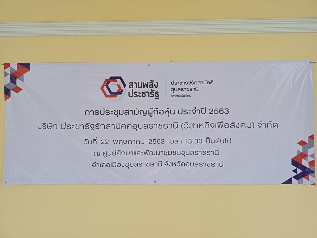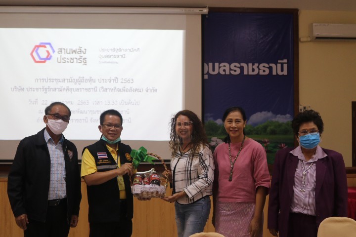 วันที่ 22 พฤษภาคม 2563 เวลา 13.30 น. ณ ห้องประชุมใหญ่ศูนย์ศึกษาและพัฒนาชุมชนอุบลราชธานี อำเภอเมืองอุบลราชธานี จังหวัดอุบลราชธานี หอการค้าจังหวัดอุบลราชธานี โดย นายนิมิต สิทธิไตรย์ ประธานหอการค้าจังหวัดอุบลราชธานี เข้าร่วมประชุมการประชุมสามัญผู้ถือหุ้น บริษัท ประชารัฐรักสามัคคีอุบลราชธานี (วิสาหกิจเพื่อสังคม) จำกัด ประจำปี 2563 เพื่อรายงานสรุปผลการดำเนินงานของบริษัทฯ ระหว่างเดือนมกราคม 2562 ถึงเดือนมกราคม 2563 และพิจารณาเสนอแนวนโยบายการดำเนินงาน ประจำปี 2563-2564 ตลอดจนการพิจารณาเลือกกรรมการใหม่ แทนกรรมการที่ออกตามวาระตลอดจนการพิจารณาเรื่องอื่นๆ โดยมี นายอุทัย ทองเดช รองผู้ว่าราชการจังหวัดอุบลราชธานี เป็นประธานการประชุม, นางพองาม ปรีดาสันติ์ ประธานกรรมการผู้จัดการ บริษัท ประชารัฐรักสามัคคีอุบลราชธานี (วิสาหกิจเพื่อสังคม) จำกัด, ผศ.ดร.ธนพรรณ ธานี กรรมการผู้จัดการ บริษัท ประชารัฐรักสามัคคีอุบลราชธานี (วิสาหกิจเพื่อสังคม) จำกัด พร้อมด้วยคณะกรรมการและผู้ถือหุ้นบริษัทฯ มาร่วมประชุมกันอย่างพร้อมเพรียง.