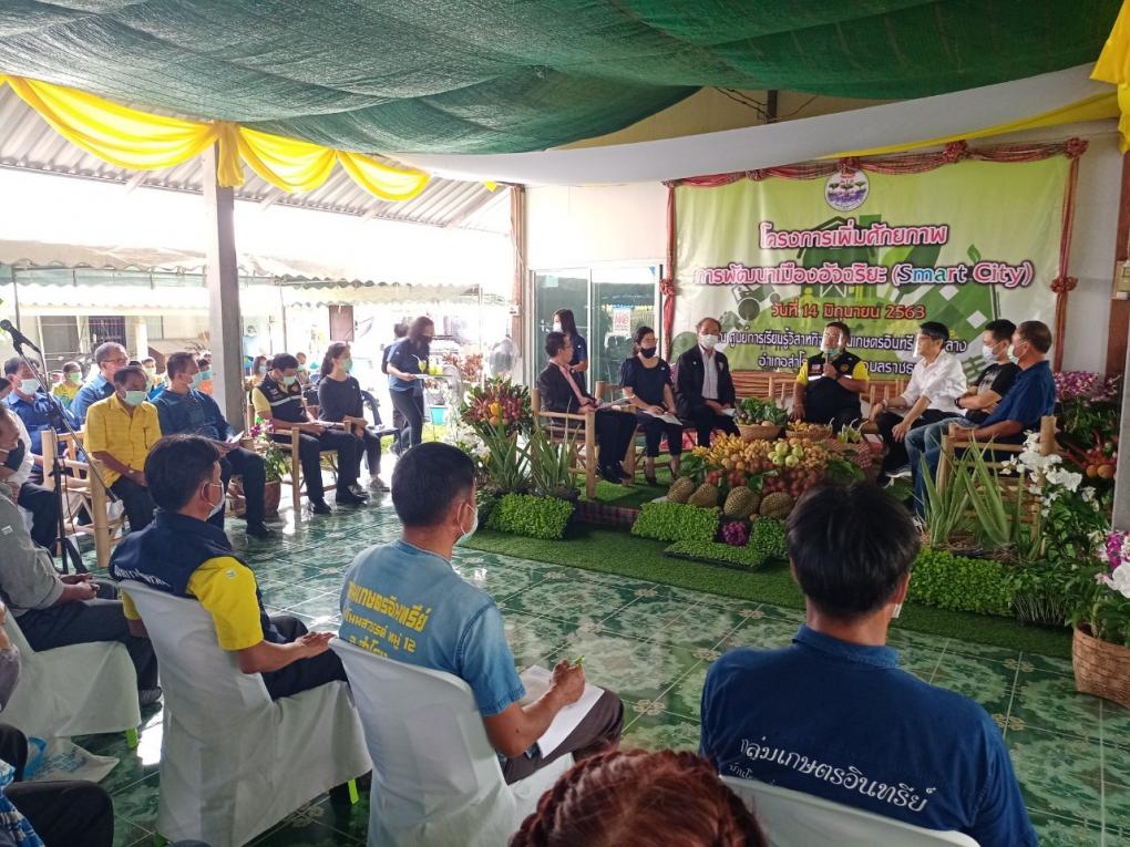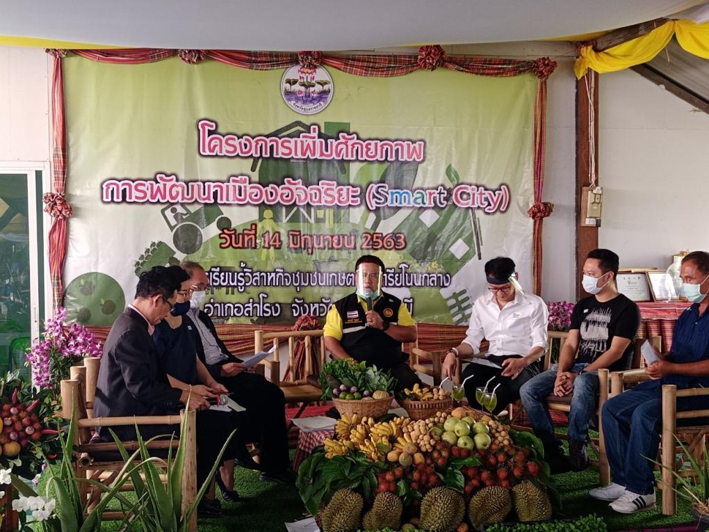วันที่ 14 มิถุนายน 2563 เวลา 09.30 น. ณ ศูนย์เรียนรู้วิสาหกิจชุมชนเกษตรอินทรีย์โนนกลาง อำเภอสำโรง จังหวัดอุบลราชธานี หอการค้าจังหวัดอุบลราชธานี โดย นายนิมิต สิทธิไตรย์ ประธานหอการค้าจังหวัดอุบลราชธานี ร่วมเสวนาเชิงอภิปรายแบรมการสร้างการรับรู้การขับเคลื่อนเมืองอัจฉริยะ (Smart City) อุบลราชธานี ตามโครงการเพิ่มศักยภาพการพัฒนาเมืองอัจฉริยะ (Smart City) อุบลราชธานี ในหัวข้อ “การปรับบทบาทขององค์กรภาครัฐ ภาคเอกชน และภาคเกษตรกรรม ต่อการขับเคลื่อนเมืองอัจฉริยะ ภายหลังเหตุการณ์การแพร่ระบาดของโควิด-19” โดยมี นายสฤษดิ์ วิฑูรย์ ผู้ว่าราชการจังหวัดอุบลราชธานี เป็นประธาน,นายอำเภอสำโรง, ผู้บริหารหลักสูตร ดิจิทัลเกษตร (รุ่นที่ 1),รองประธานสภาอุตสาหกรรมจังหวัดอุบลราชธานี, ผู้แทนเกษตรกรอำเภอสำโรง มาร่วมบรรยาย มีผู้แทนภาคเกษตร เกษตรกรอำเภอสำโรงมาร่วมรับฟังด้วย.
