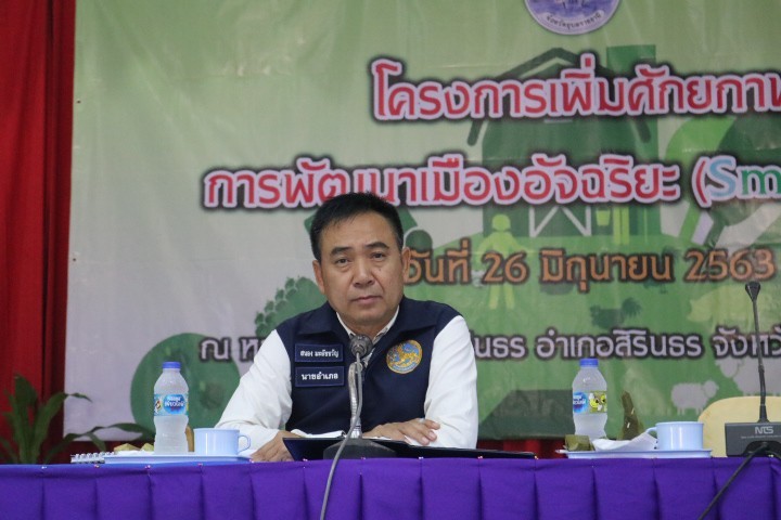 วันที่ 26 มิถุนายน 2563 เวลา 09.00 น. ณ หอประชุมที่ว่าการอำเภอสิรินธร อำเภอสิรินธร จังหวัดอุบลราชธานี หอการค้าจังหวัดอุบลราชธานี โดย นายนิมิต สิทธิไตรย์ ประธานหอการค้าจังหวัดอุบลราชธานี, นางทัศนีย์ บุญประสิทธิ์ ประธานคณะทำงานหอการค้าจังหวัดอุบลราชธานี ประจำอำเภอพิบูลมังสาหาร และนายฤทธิพันธุ์ สัณฑมาศจิรวัส กรรมการคณะทำงานประชาสัมพันธ์หอการค้าจังหวัดอุบลราชธานี อำเภอพิบูลมังสาหาร เข้าร่วมกิจกรรมเสวนาเชิงอภิปรายการสร้างการรับรู้การขับเคลื่อนเมืองอัจฉริยะ (Smart City) จังหวัดอุบลราชธานี ตามโครงการเพิ่มศักยภาพการพัฒนาเมืองอัจฉริยะ (Smart City) จังหวัดอุบลราชธานี ในหัวข้อ “การปรับบทบาทขององค์กรภาครัฐ ภาคเอกชน และภาคเกษตรกรรม ต่อการขับเคลื่อนเมืองอัจฉริยะ ภายหลังเหตุการณ์การแพร่ระบาดของโควิด-19” โดย นายสนอง มาลัยขวัญ นายอำเภอสิรินธร เป็นประธานกล่าวเปิด และร่วมเสวนา นายไพฑูรย์ พรหมสอน ผู้อำนวยการกลุ่มงานอำนวยการจังหวัดอุบลราชธานี เป็นผู้กล่าวรายงาน มีผู้เสวนาประกอบด้วย ผศ.ดร.ชวลิต ถิ่นวงศ์พิทักษ์ รองอธิการบดีฝ่ายวิจัยและพันธกิจสังคม มหาวิทยาลัยอุบลราชธานี, นายธนะรัชต์ สุภาพันธ์ ผู้อำนวยการกลุ่มงานยุทธศาสตร์และข้อมูลเพื่อการพัฒนาจังหวัด และประธานหอการค้าจังหวัดอุบลราชธานี มาร่วมบรรยาย มีผู้แทนกลุ่มวิสาหกิจชุม กลุ่มเกษตรกร ผู้นำชุมชนอำเภอสิรินธร จำนวน 250 คน มาร่วมรับฟังด้วย.