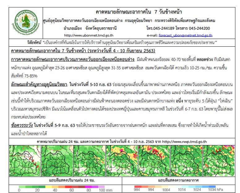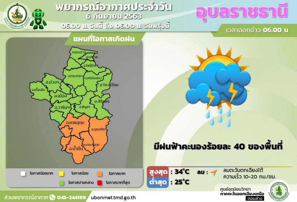 5.50 โดยรวมวันนี้อุบลฯ มีโอกาสฝนตก ปริมาณมากบ้างน้อยบ้าง แทบทั้งวัน ( แอดมิน )