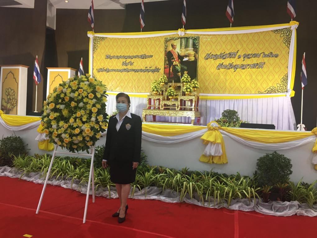วันที่ 1 ตุลาคม 2563 เวลา 07.30 น. ณ หอประชุมจังหวัดอุบลราชธานี (ด้านหลังอาคารศาลากลางจังหวัดอุบลราชธานี) นางพริ้งพิศ วังทอง รองประธานหอการค้าจังหวัดอุบลราชธานี ในนามหอการค้าจังหวัดอุบลราชธานี ร่วมพิธีวางพวงมาลาถวายราชสักการะเนื่องใน "วันที่ระลึกพระบาทสมเด็จพระจอมเกล้าเจ้าอยู่หัว" ประจำปี 2563.