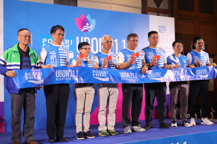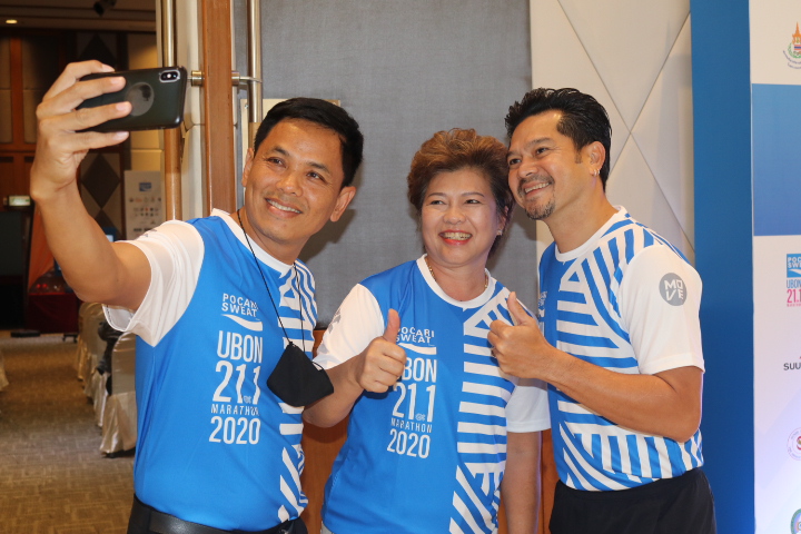 วันที่ 3 ตุลาคม 2563 เวลา 14.00 น. นายมงคล จุลทัศน์ รองประธานหอการค้าจังหวัดอุบลราชธานี และนางรัตนากร ฑีฆนานนท์ เลขาธิการหอการค้าจังหวัดอุบลราชธานี ผู้บริหารโครงการอุบลสแควร์ ร่วมงานแถลงข่าวการแข่งขัน วิ่งโพคารี่สเวท อุบล 21.1 มาราธอน 2020 โดย ดร.นพ.ไพโรจน์ เสาน่วม ผู้ช่วยผู้จัดการกองสนับสนุนการสร้างเสริมสุขภาพ (สสส.) กล่าวถึงการวิ่งเพื่อสุขภาพของประชาชนในชีวิตวิถีใหม่ (New Normal Race) และได้รับเกียรติจากนายวิรุจ วิชัยบุญ รองผู้ว่าราชการจังหวัดอุบลราชธานี กล่าวถึงความพร้อมในการเปิดจังหวัด เพื่อต้อนรับนักวิ่งจากทั่วประเทศ พร้อมหน่วยงานในจังหวัดและบริษัท มูฟ เอเชีย จำกัด เจ้าของสิทธิ์จัดการและภาคีร่วมจัดงาน แขกผู้มีเกียรติ ผู้สนับสนุนร่วมทำพิธีเปิดงานและถ่ายภาพหมู่ร่วมกันบนเวที