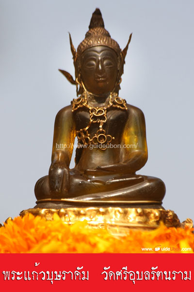 พระแก้วบุษราคัม วัดศรีอุบลรัตนาราม (พระอารามหลวง) เดิมชื่อวัดศรีทอง เป็นวัดธรรมยุติกนิกาย