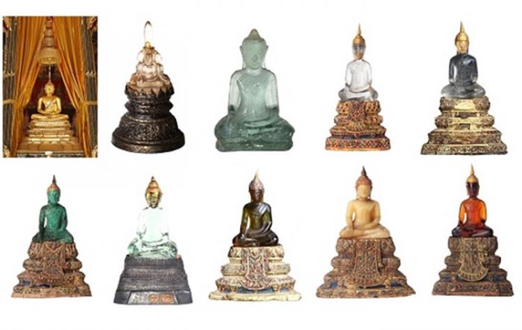 ๕ นิ้ว แกะสลักจากแก้วบุษราคัม (แก้วมณีสีเหลือง) ทึบทั้งแท่น มีสังวาลประดับที่องค์พระ ฐานหุ้มด้วย